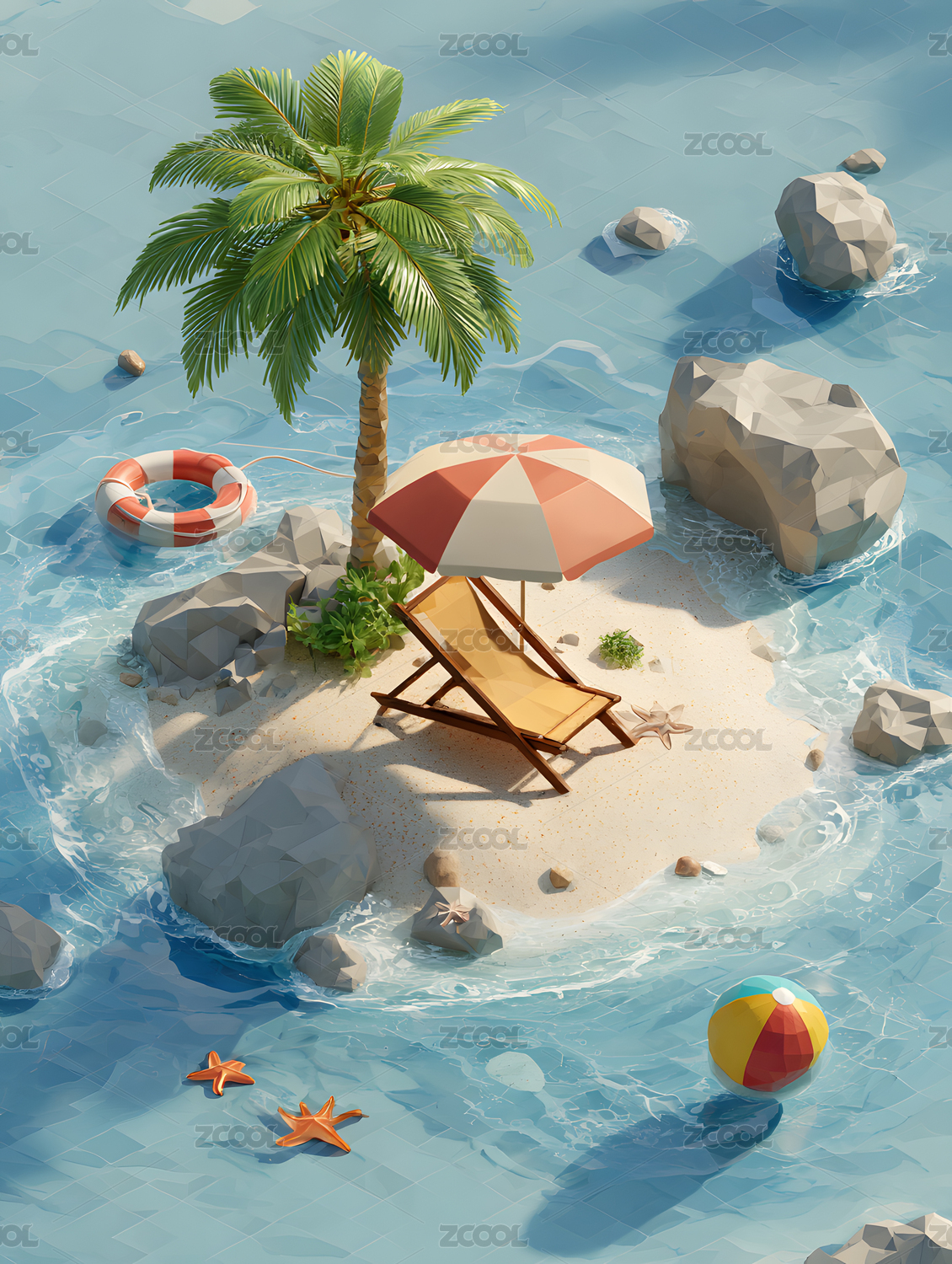 3D卡通夏日度假海岛风光