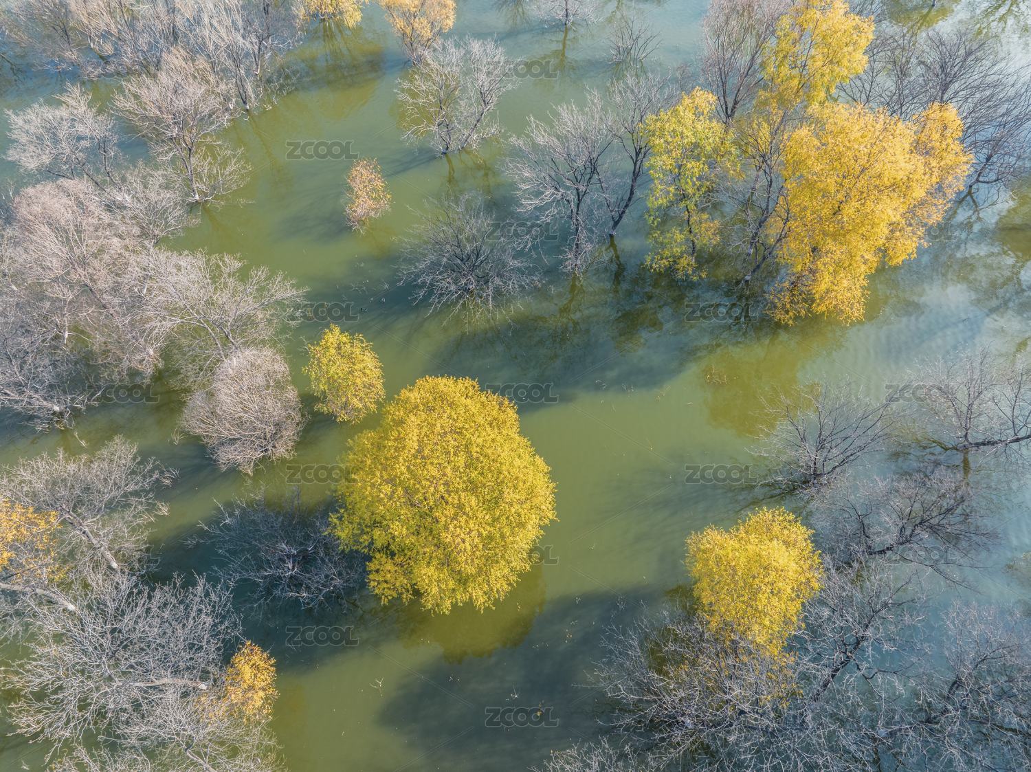 漳泽湖湿地公园,秋日,航拍,倒影,全景,树木