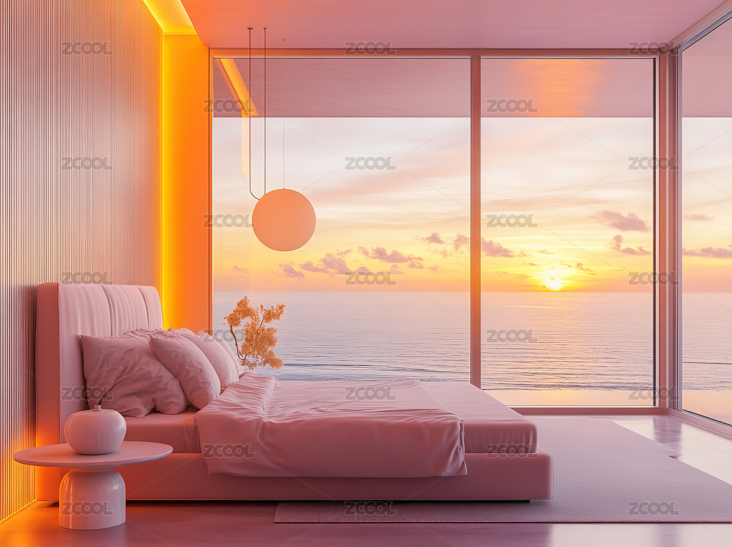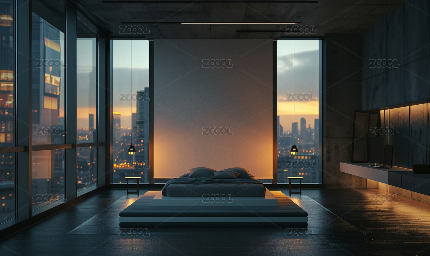 城市,创意,大窗户,房屋,极简,家居,景观,平台床,现代,中性色