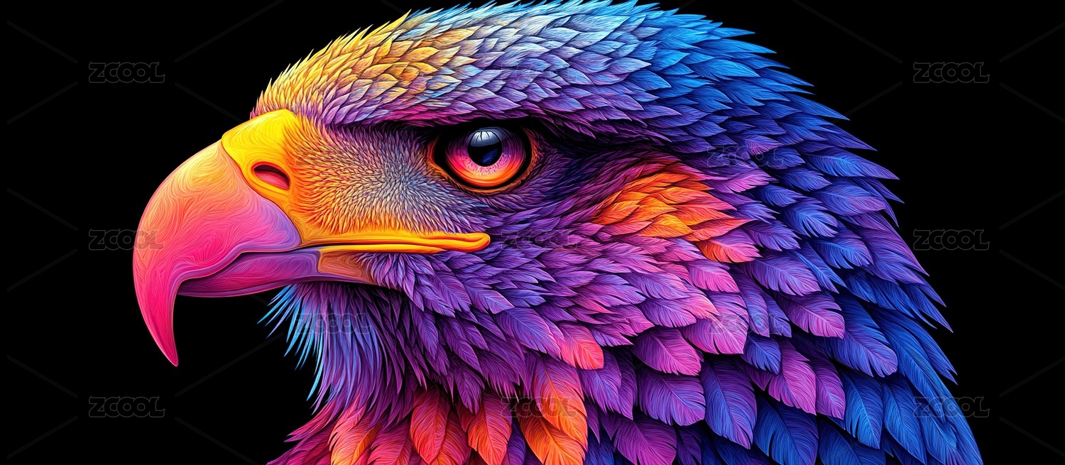 炫彩雄鹰侧颜抽象艺术
