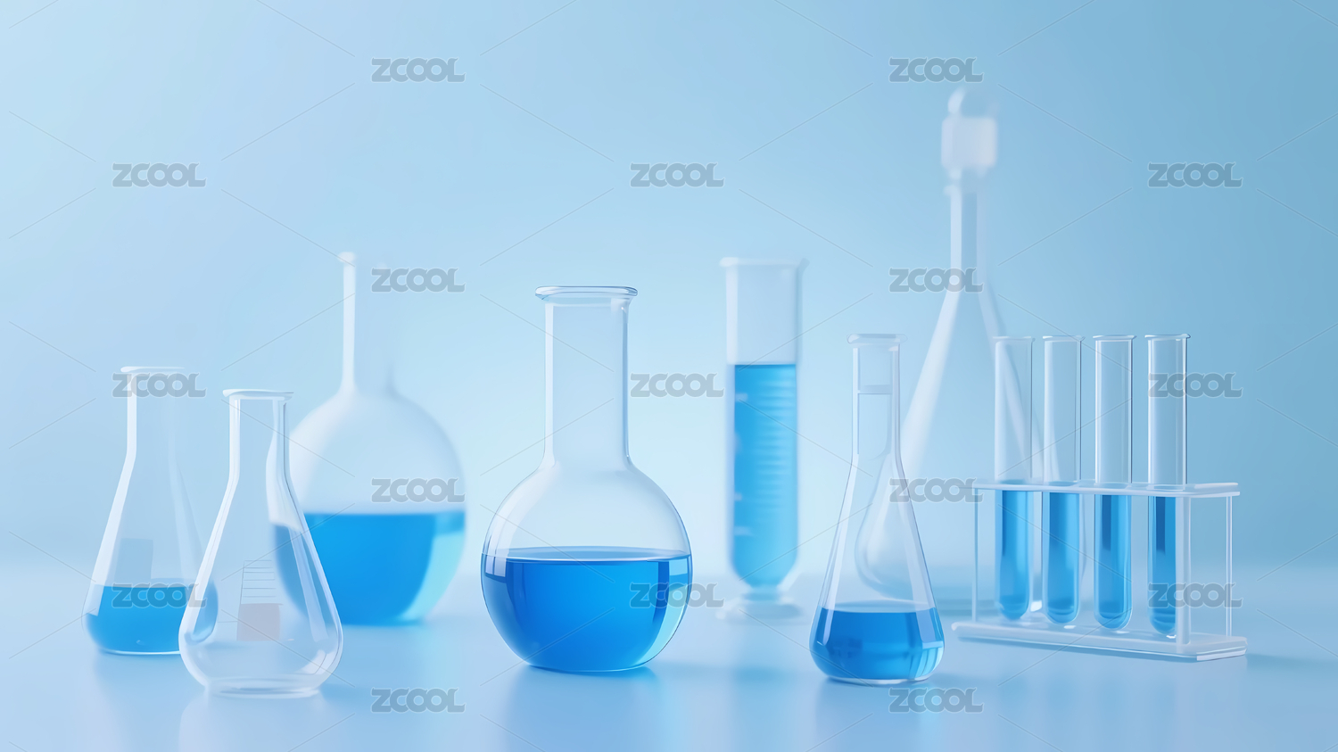 蓝色液体实验器材3D渲染图