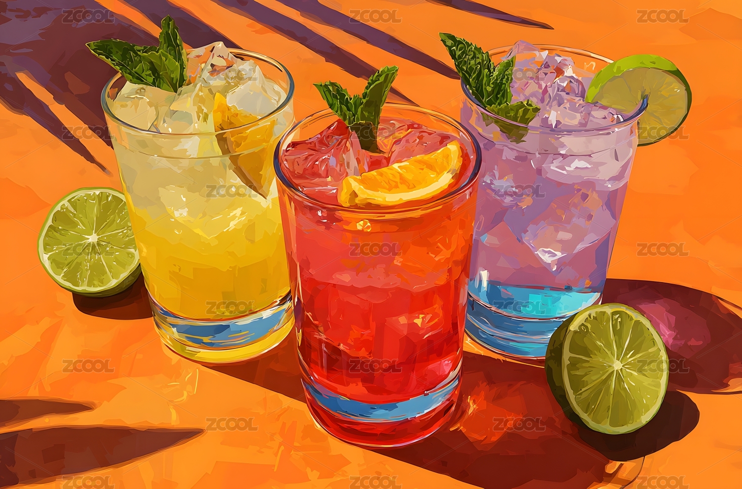 夏日缤纷饮品冰爽诱人阳光下的清凉
