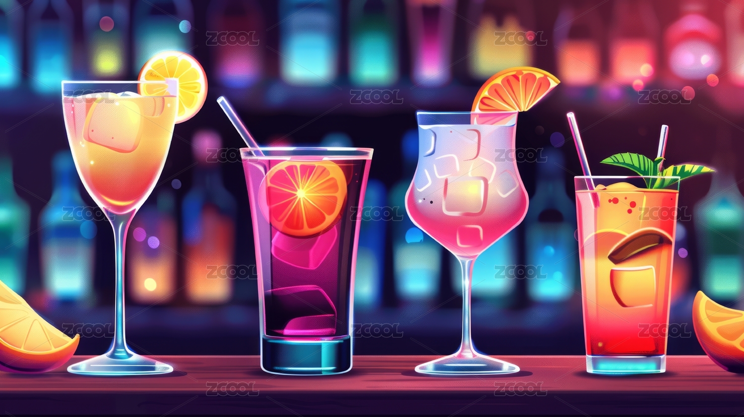 插画,复古,设计,艺术,时尚,色彩,鸡尾酒,饮品,果汁,酒