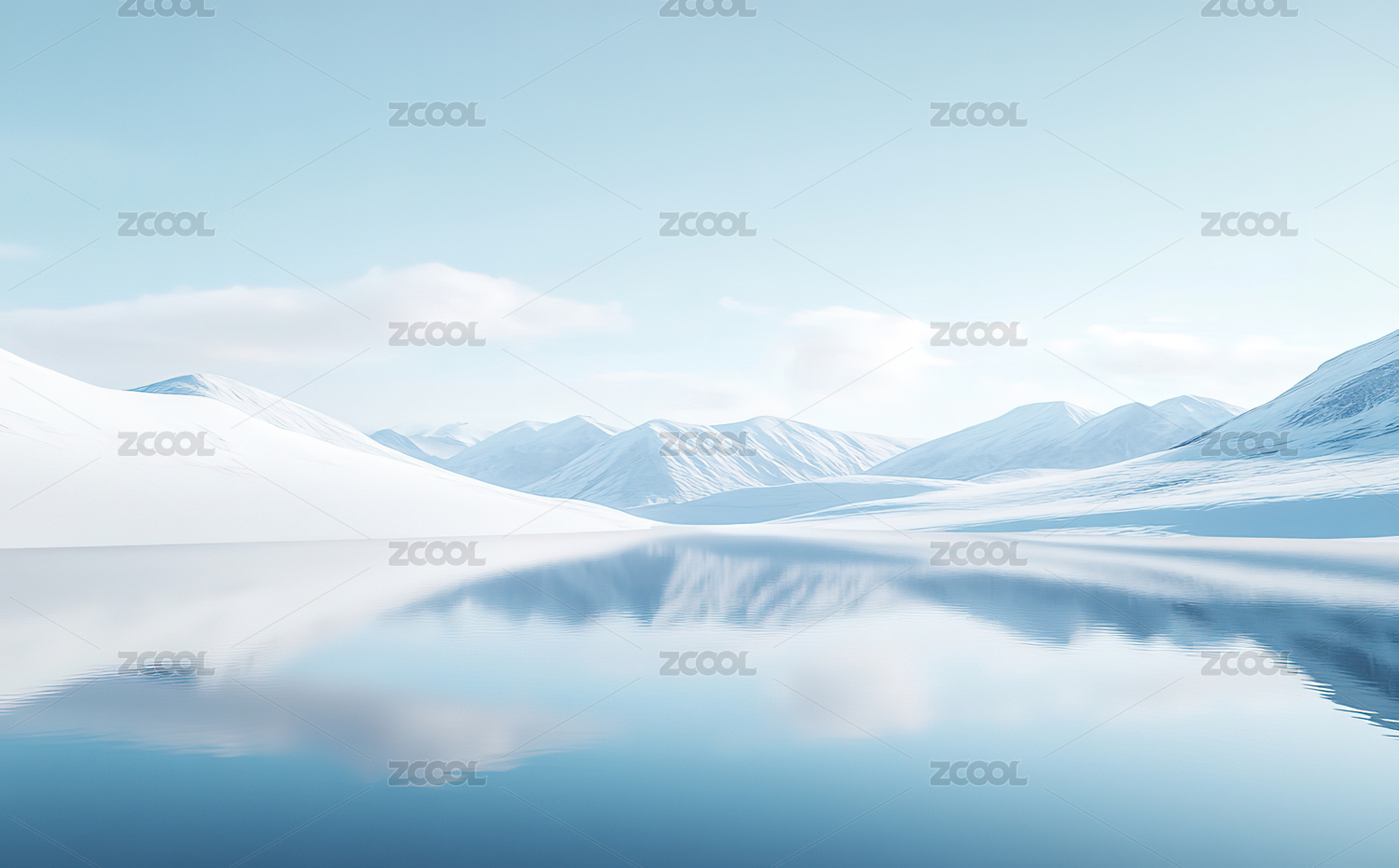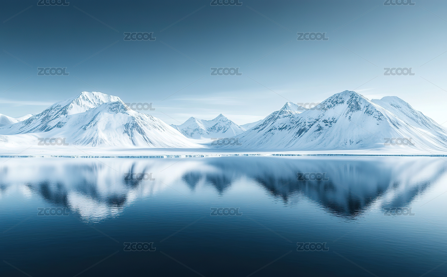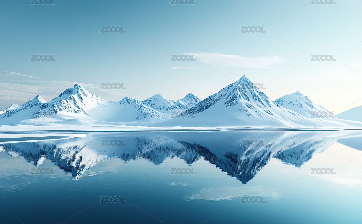 自然,背景,壁纸,创意,三维,立体,3D,冰雪,山脉,湖面