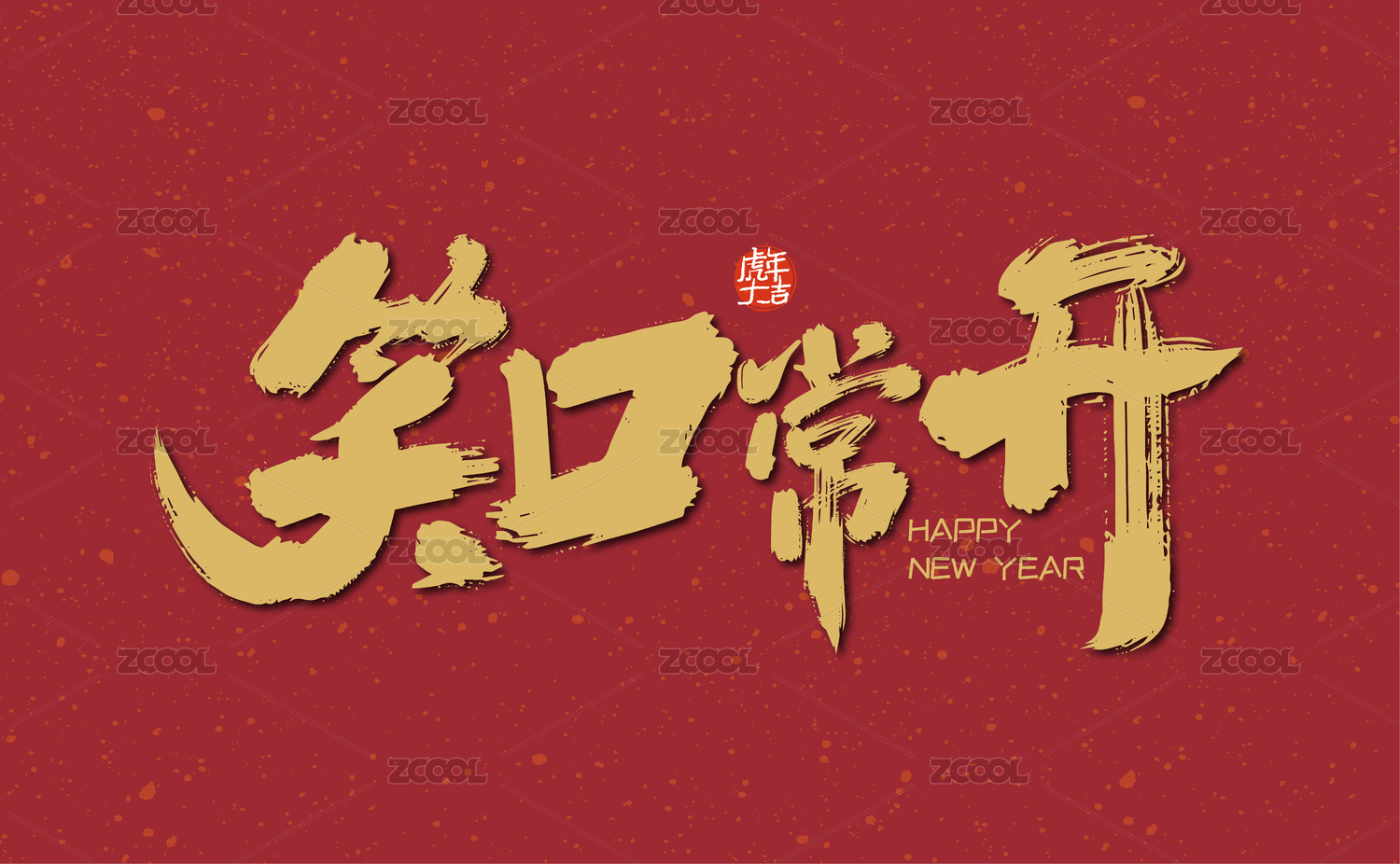 大气手写笑口常开艺术字