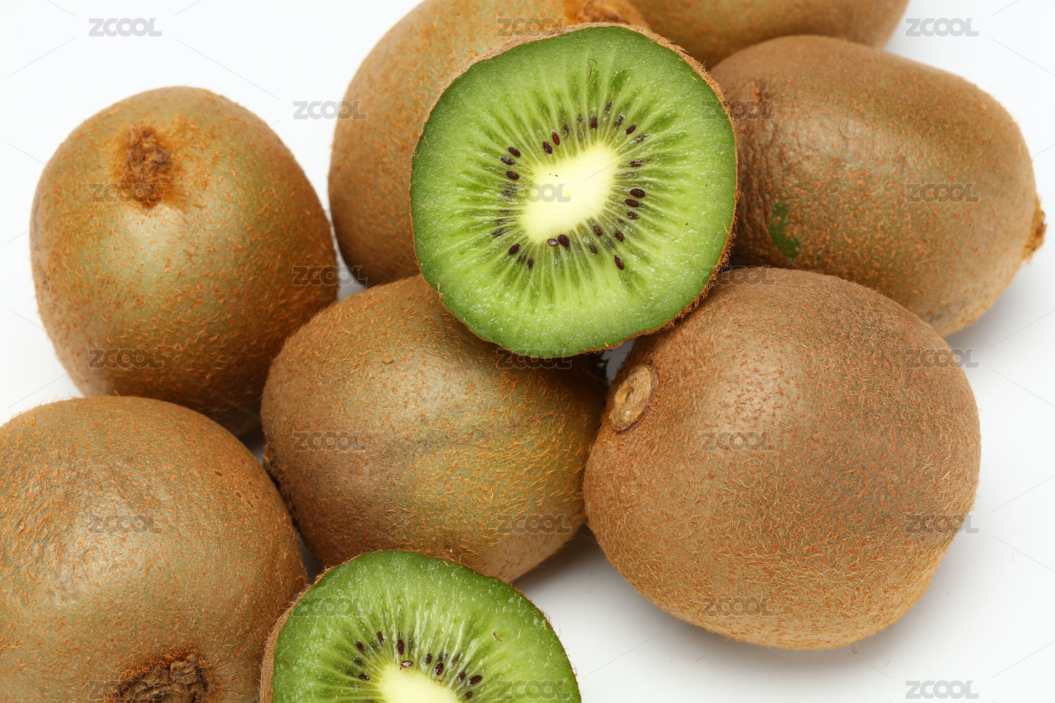 白底上切开的绿心猕猴桃奇异果