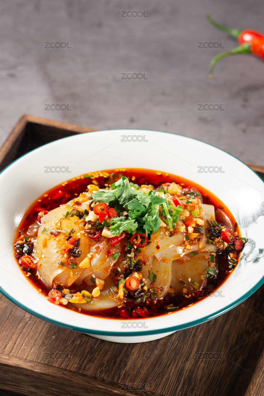 凉肘子,凉拌肘花,凉菜,芭蕉叶,云南菜,暗色调,木纹桌面,青柠檬,HENP202101