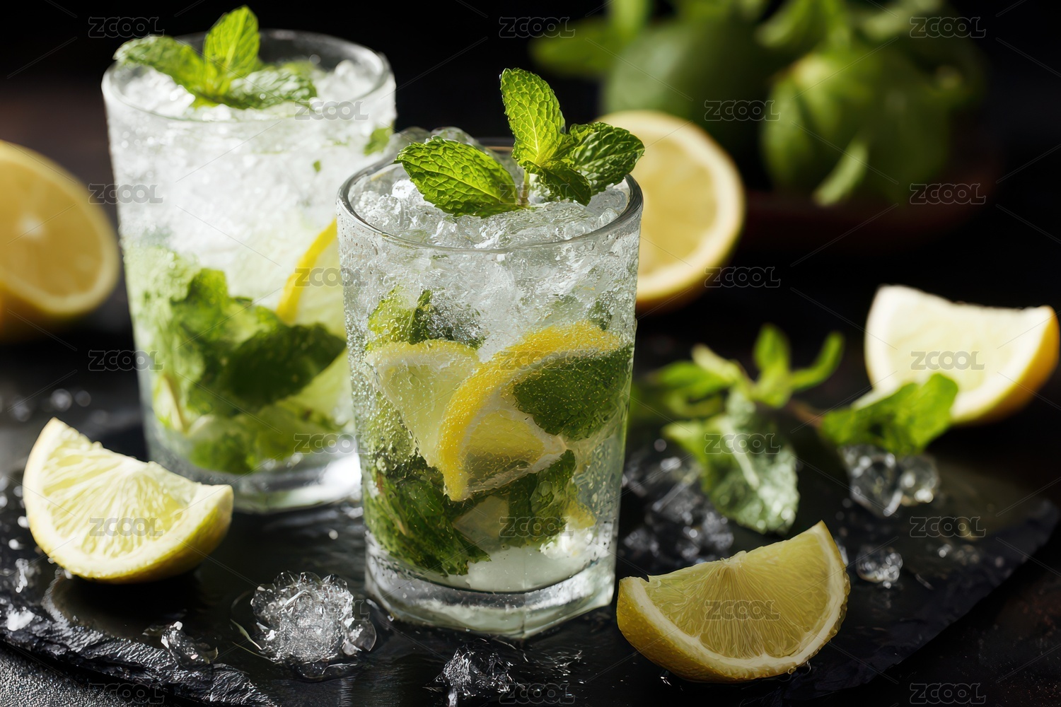 夏日饮品莫吉托鸡尾酒,薄荷柠檬
