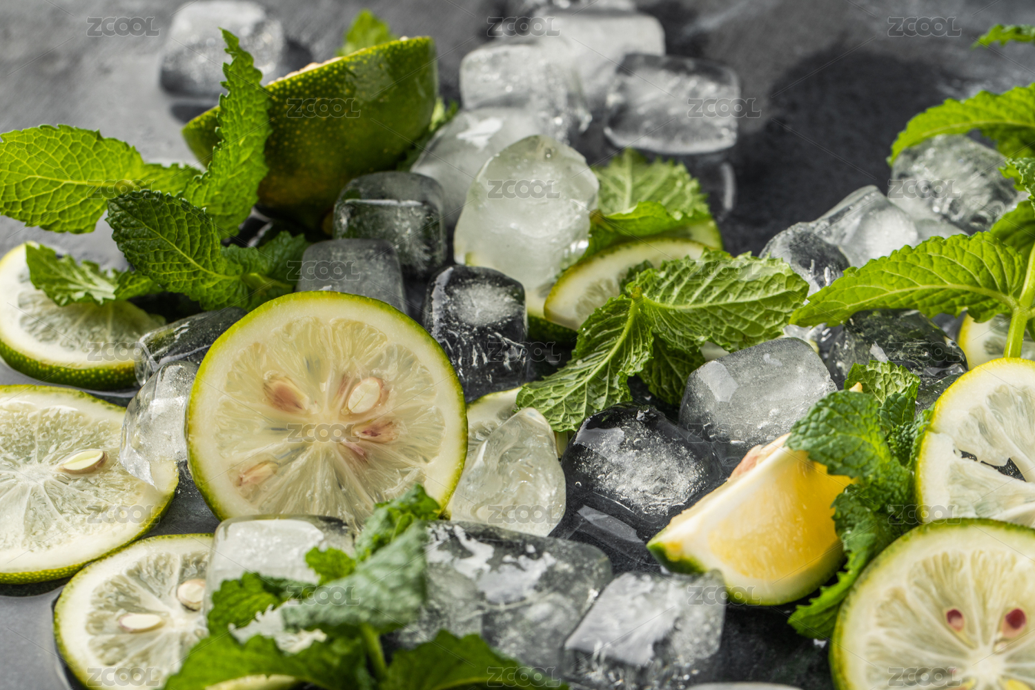 青柠檬,水果,冰块,薄荷叶,切片,夏日,饮料,食材,冰镇,酷爽
