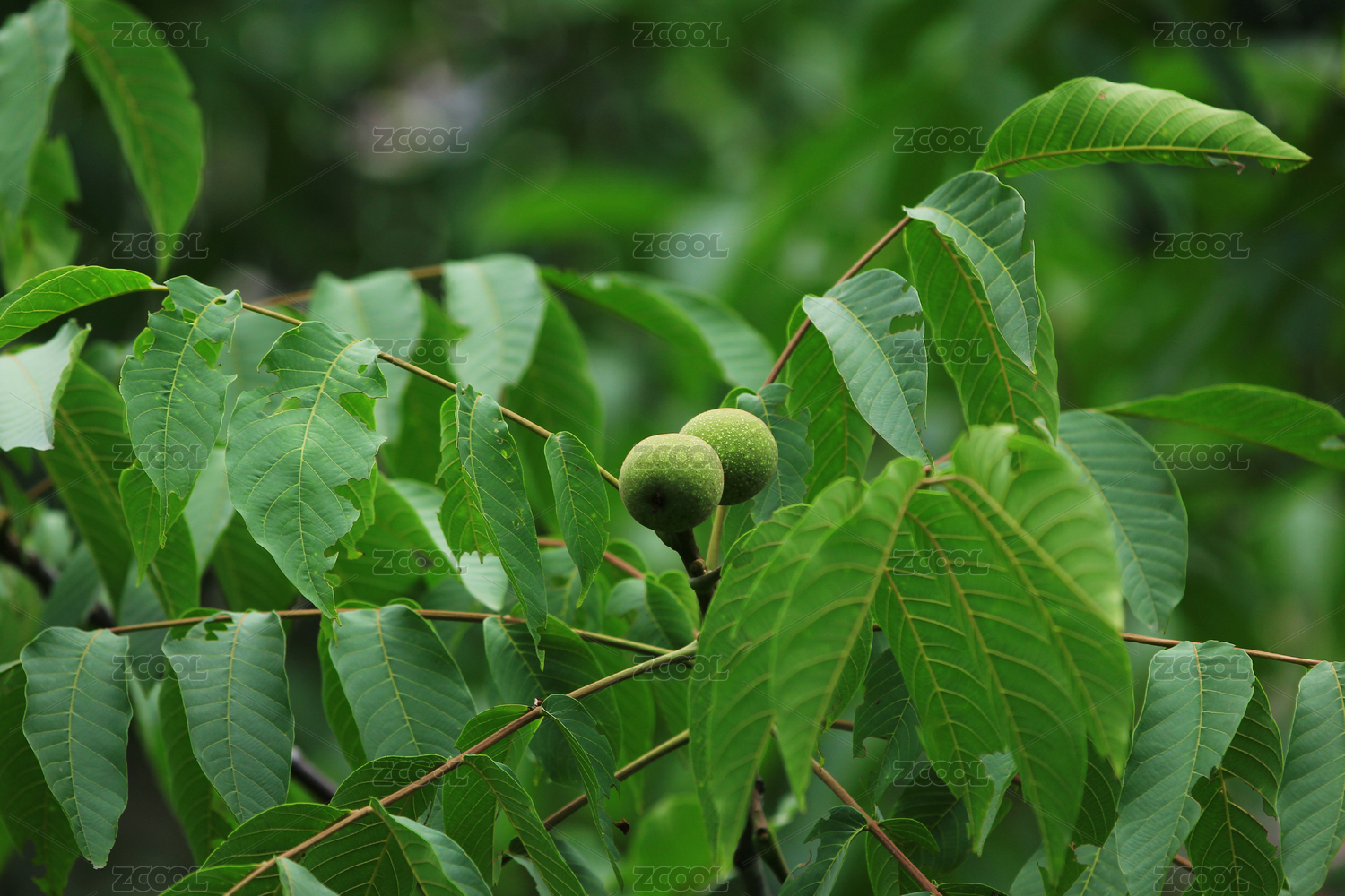 夏天郁郁葱葱核桃树挂满青涩核桃