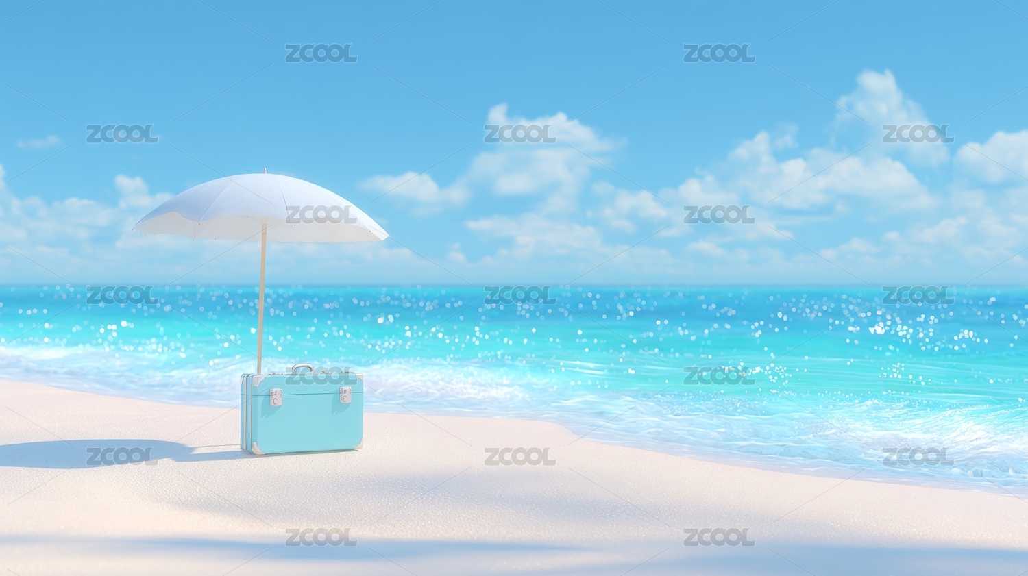 沙滩椅遮阳伞海浪沙滩的惬意时光