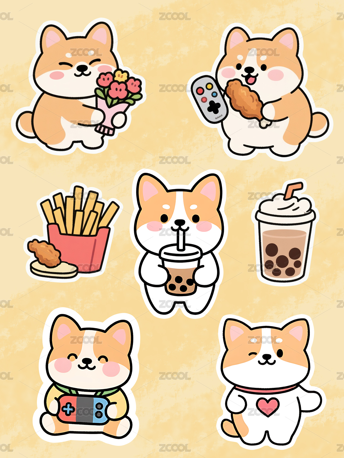 可爱狗狗贴纸图案