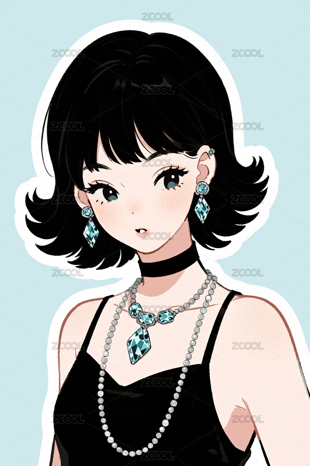 动漫女孩黑长发蓝眼睛戴着耳环高清图片