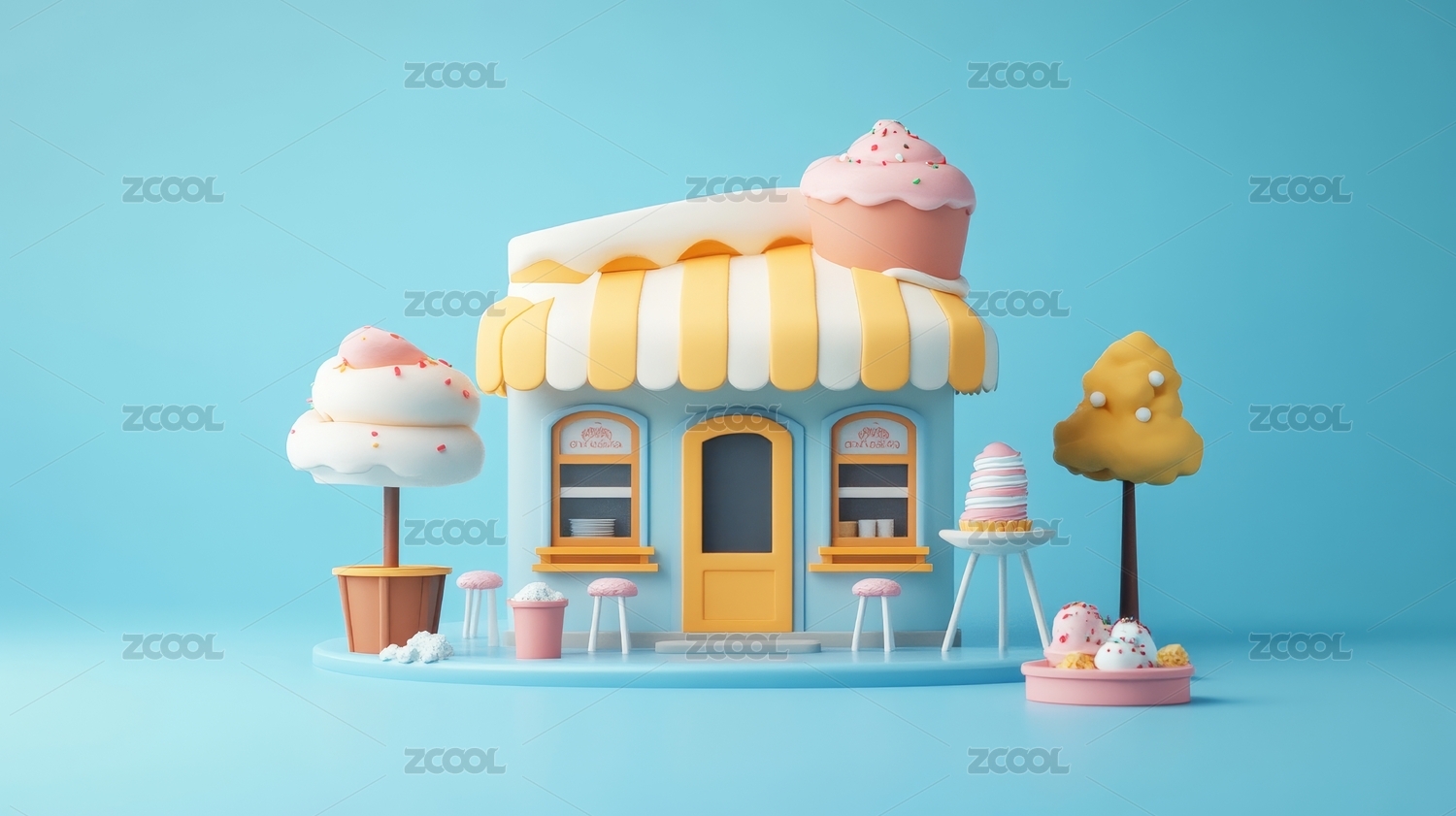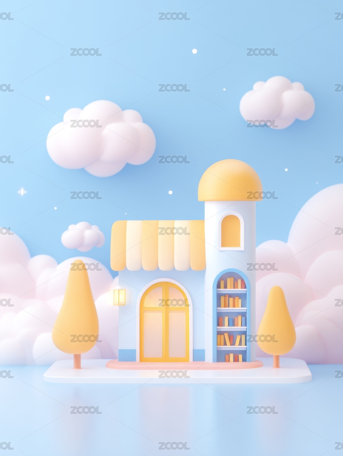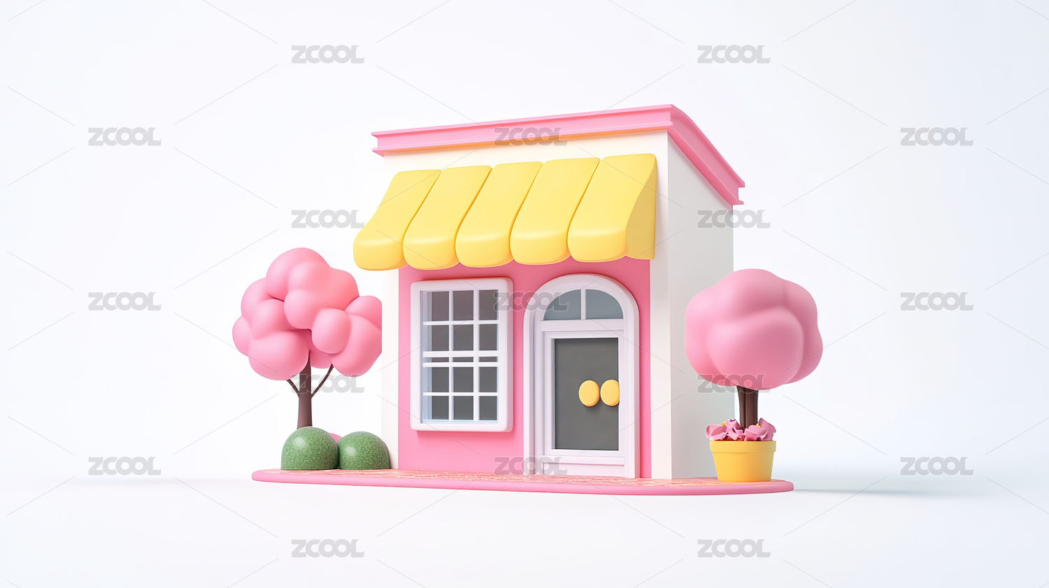 图标,粉色,卡通,梦幻,建筑,店铺,房屋,3D渲染,可爱,童话