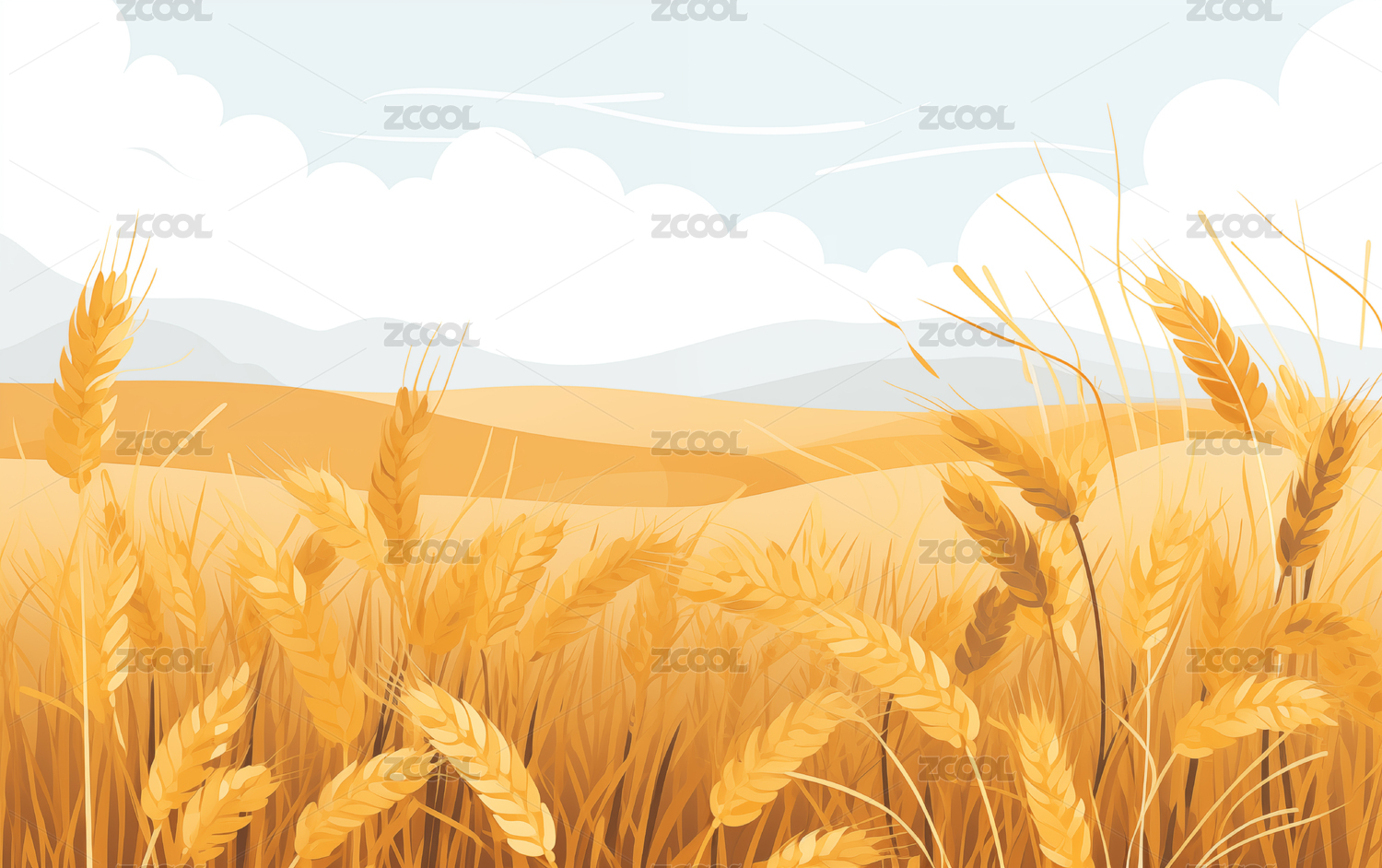 插画,背景,秋天,麦田,农业,秋季,收获,丰收,农田,农作物