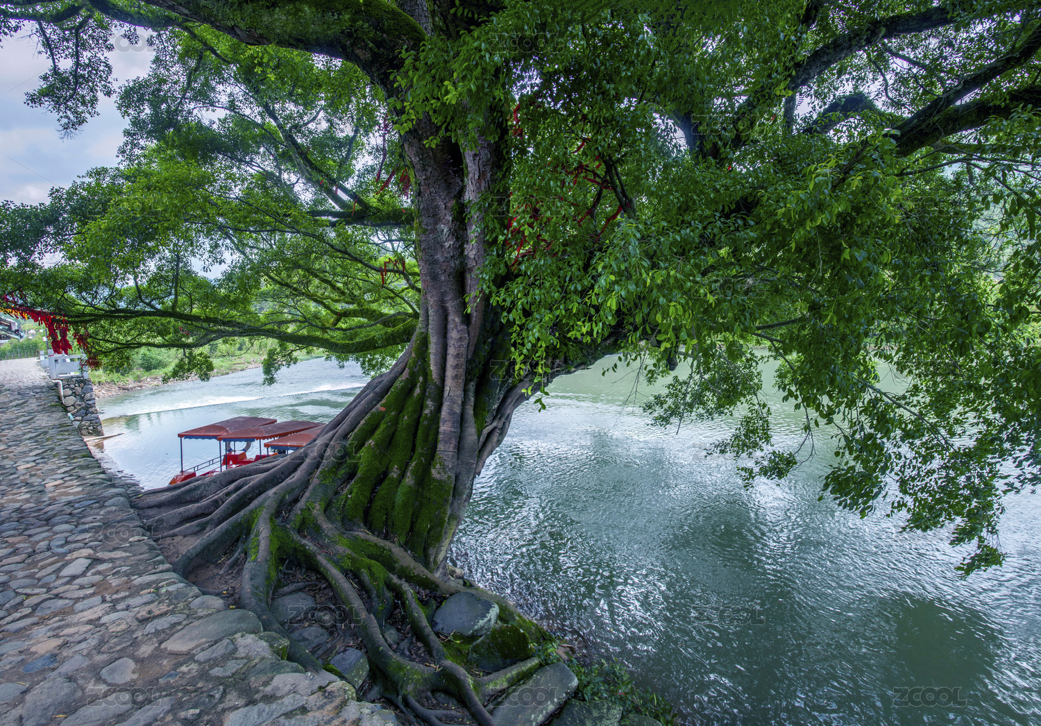 福建漳州南靖云水瑶古栈道小溪堤上榕树