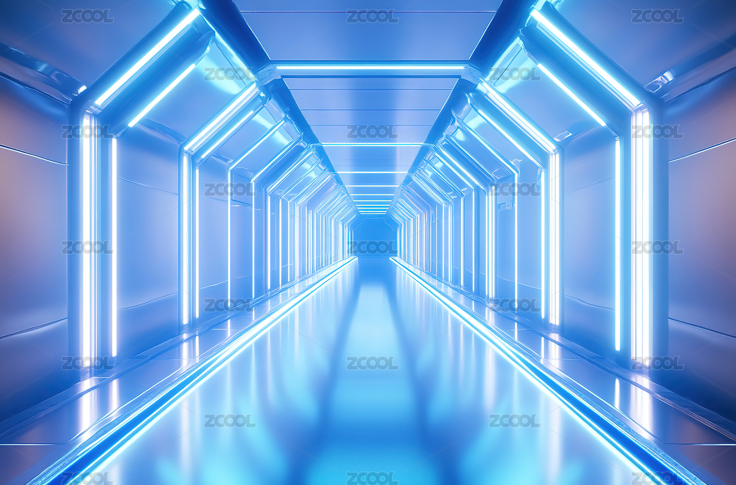 蓝光环绕的几何隧道