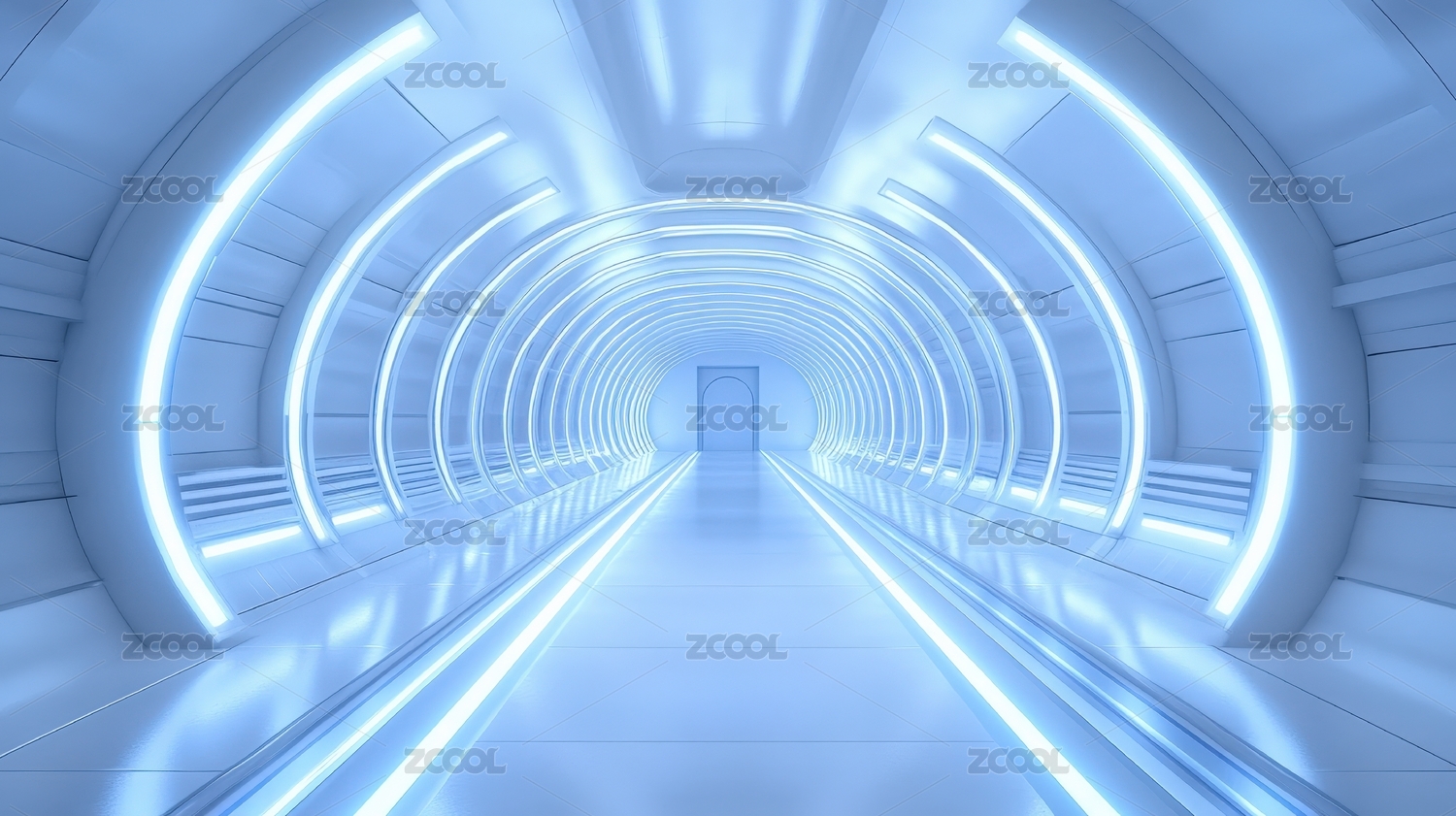 未来主义蓝色光线隧道