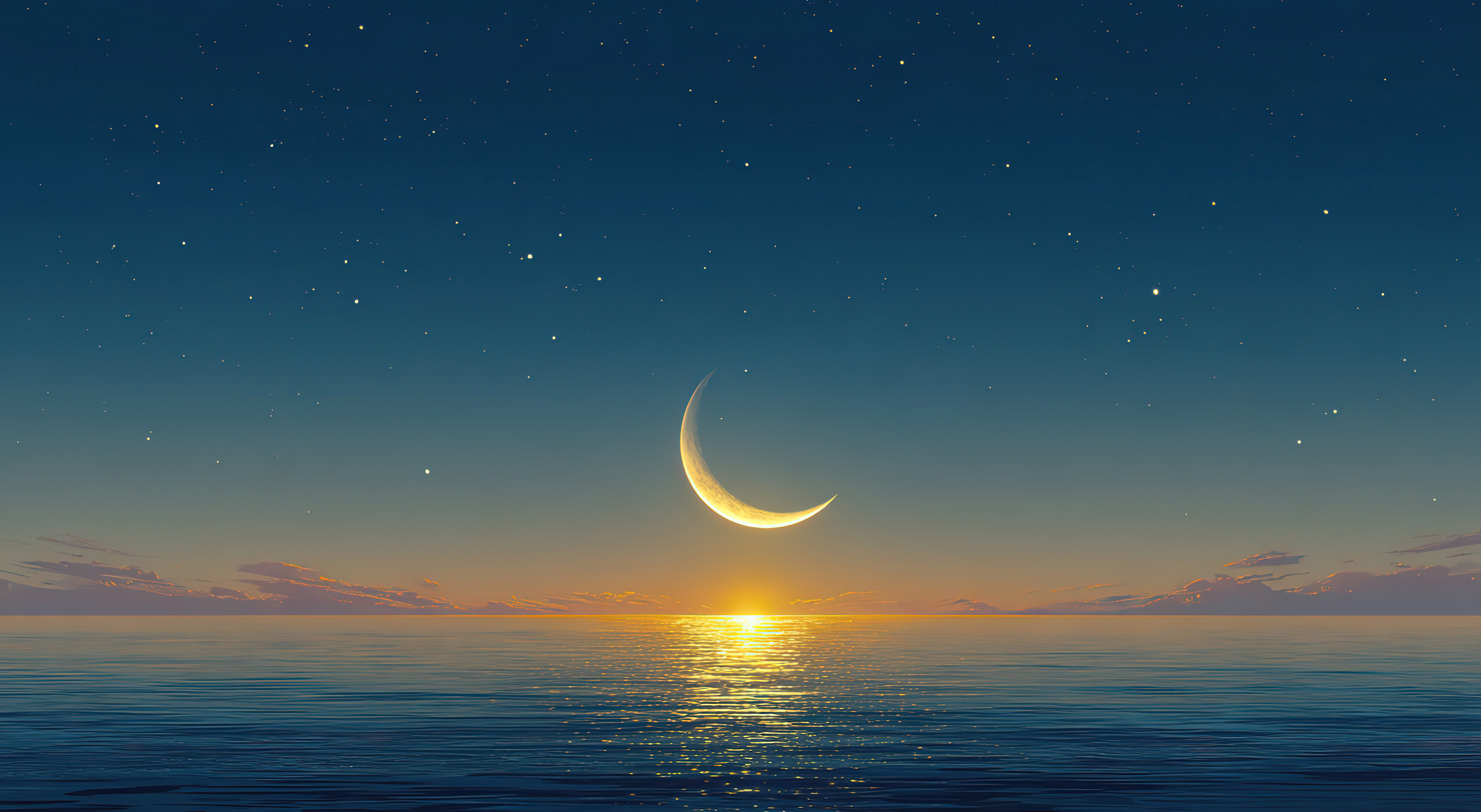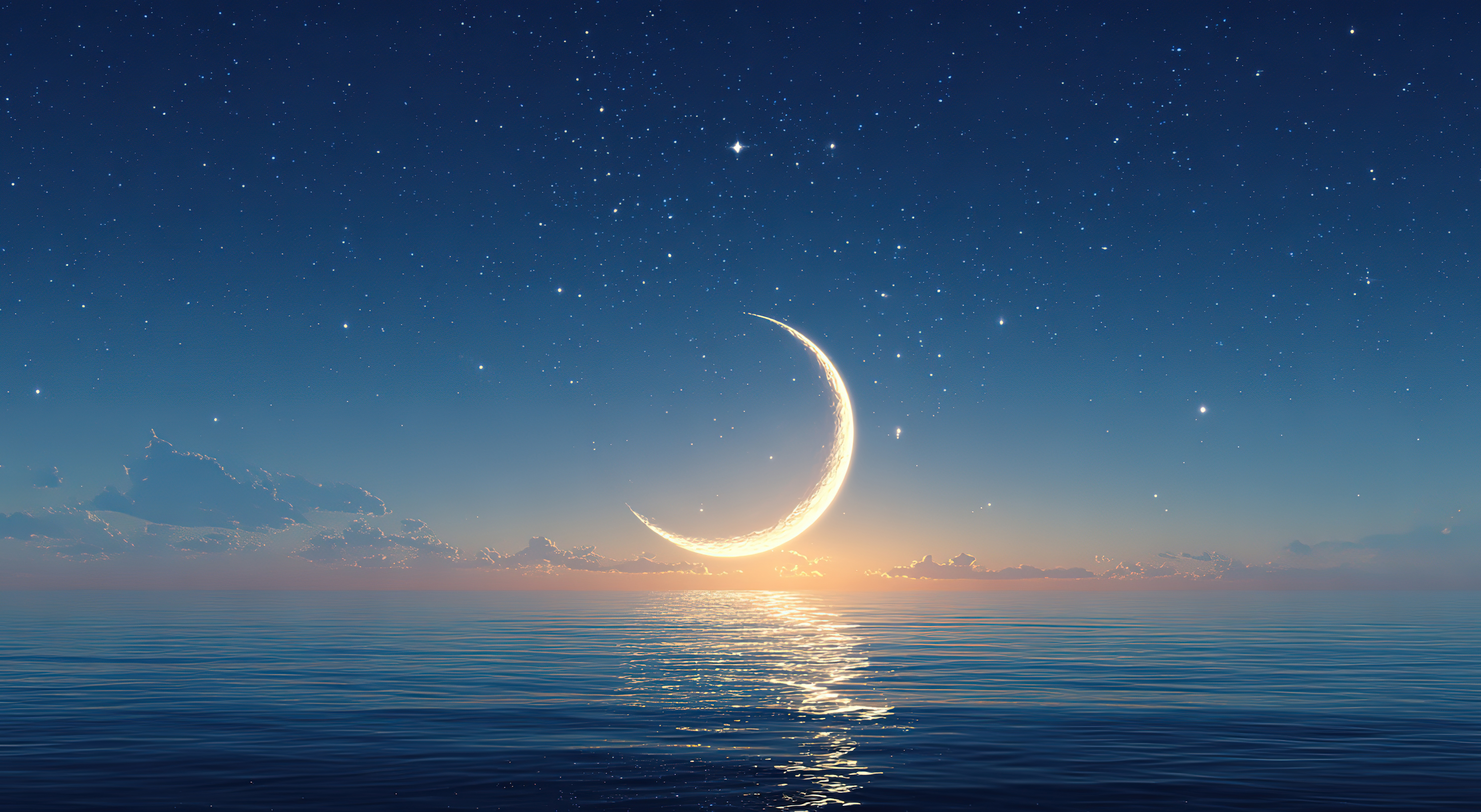 新月映照海面的宁静夜景
