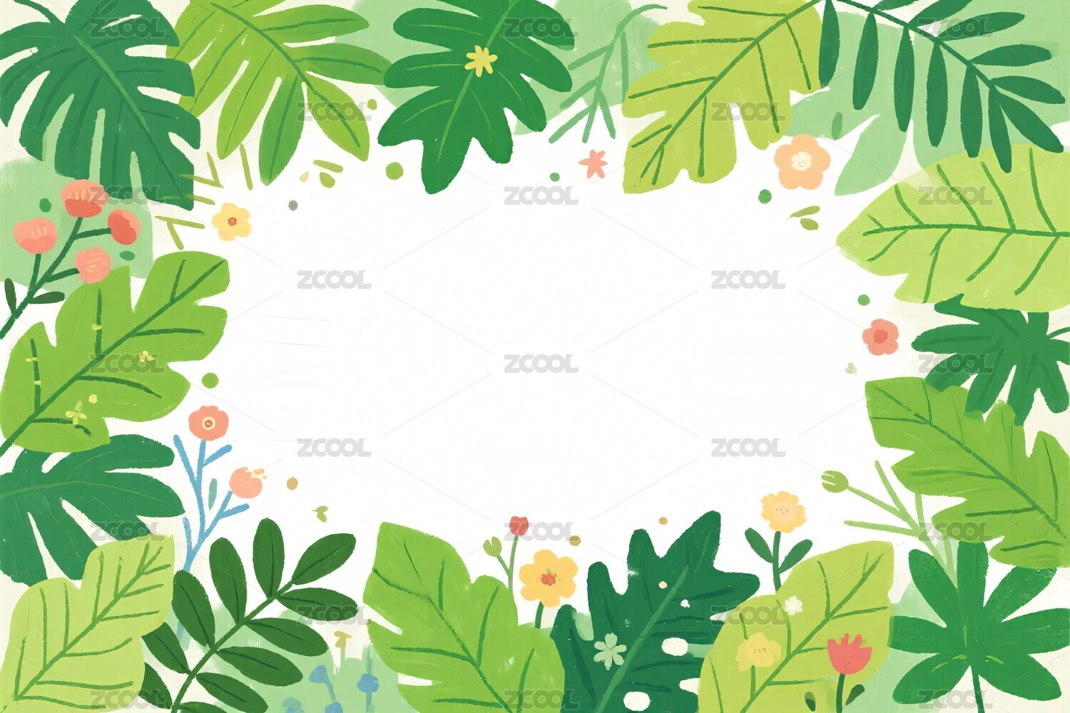 清新植物花卉叶子春天春日边框卡通插画背景