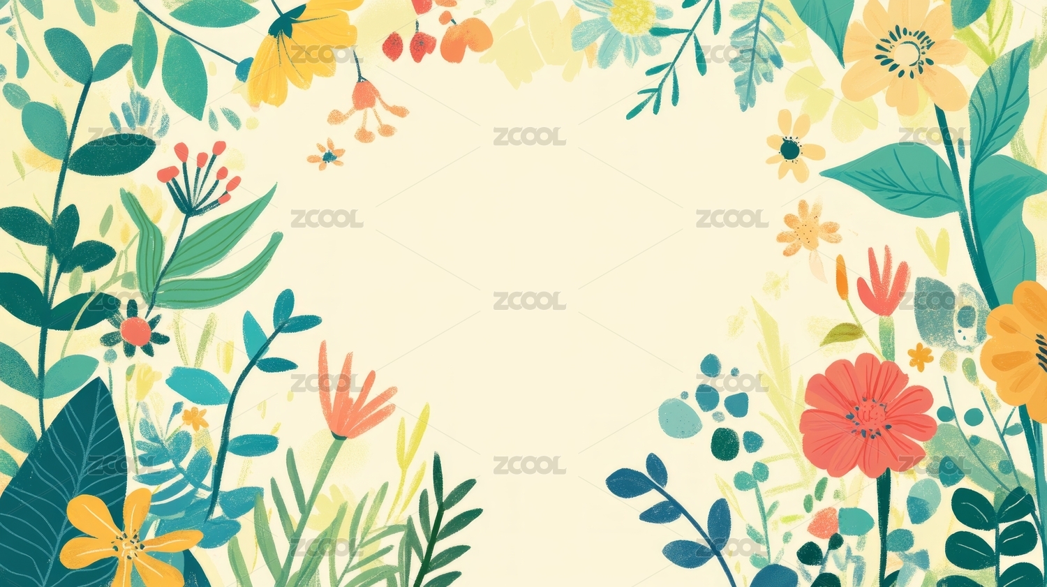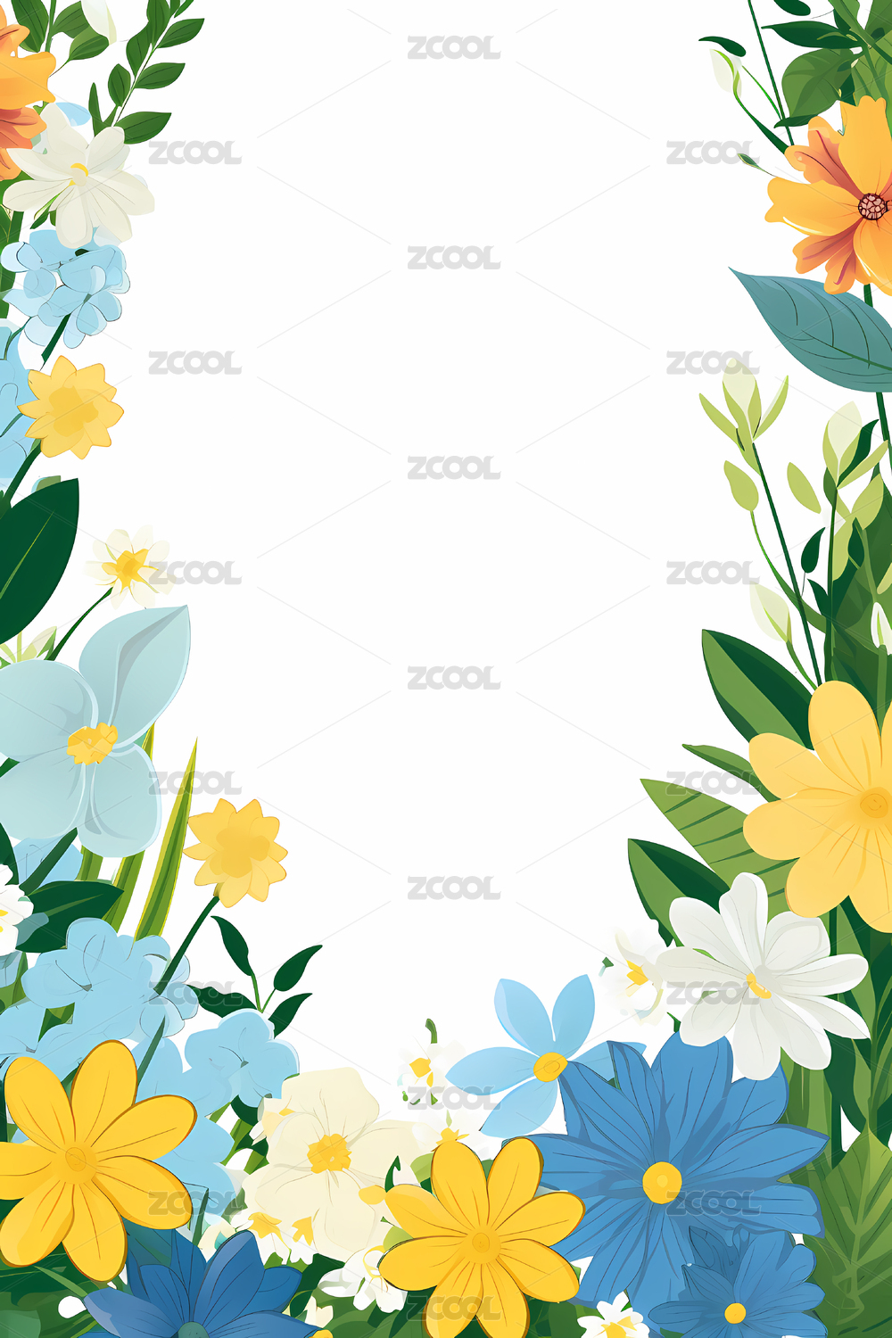 平面插画鲜花植物边框背景