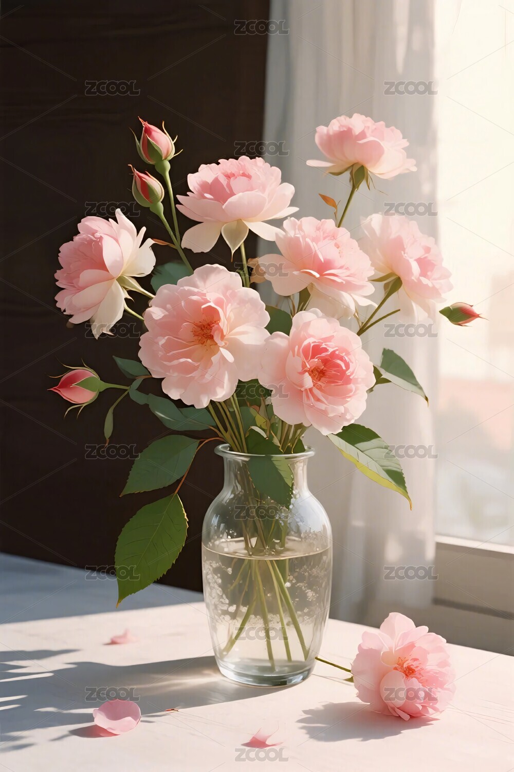 粉色玫瑰花束静谧时光