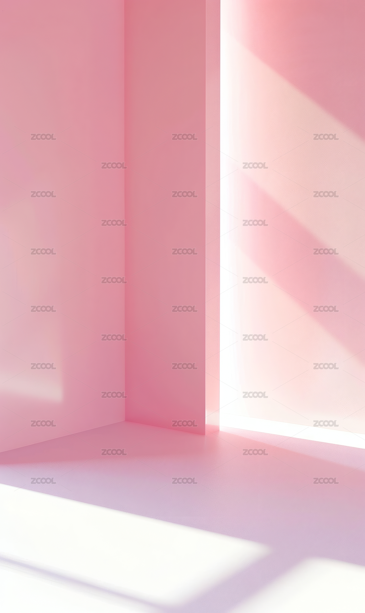 室内粉色的空墙面与地板建筑空间