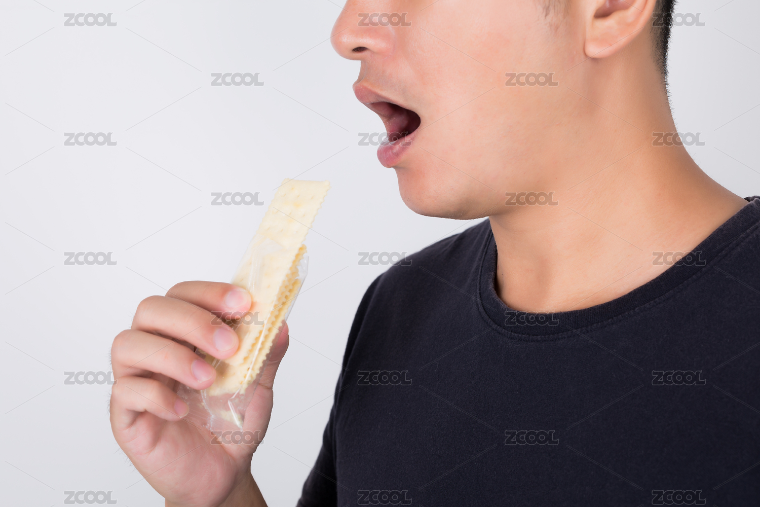 正在吃苏打饼干的亚洲男人