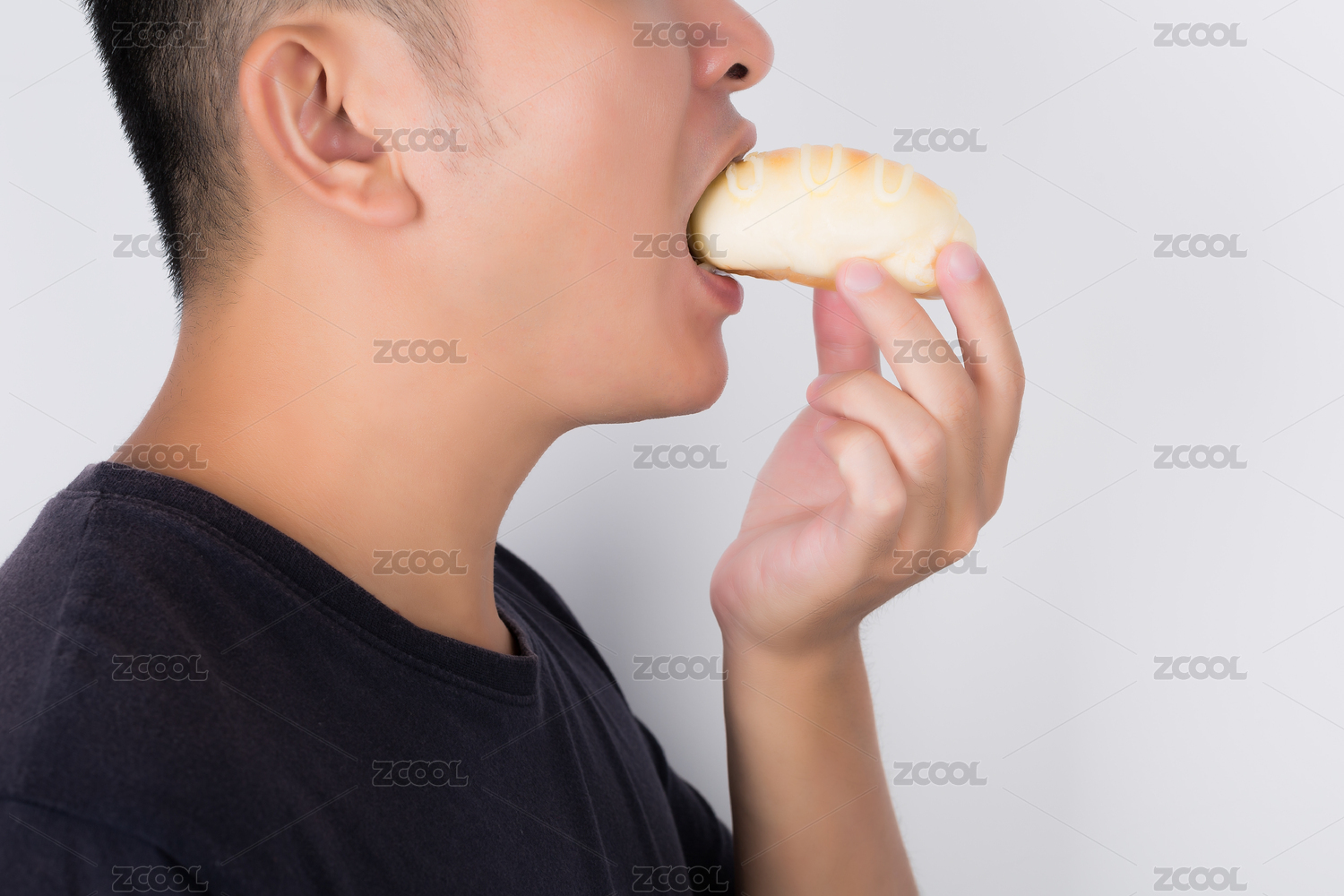 正在吃面包的亚洲男人