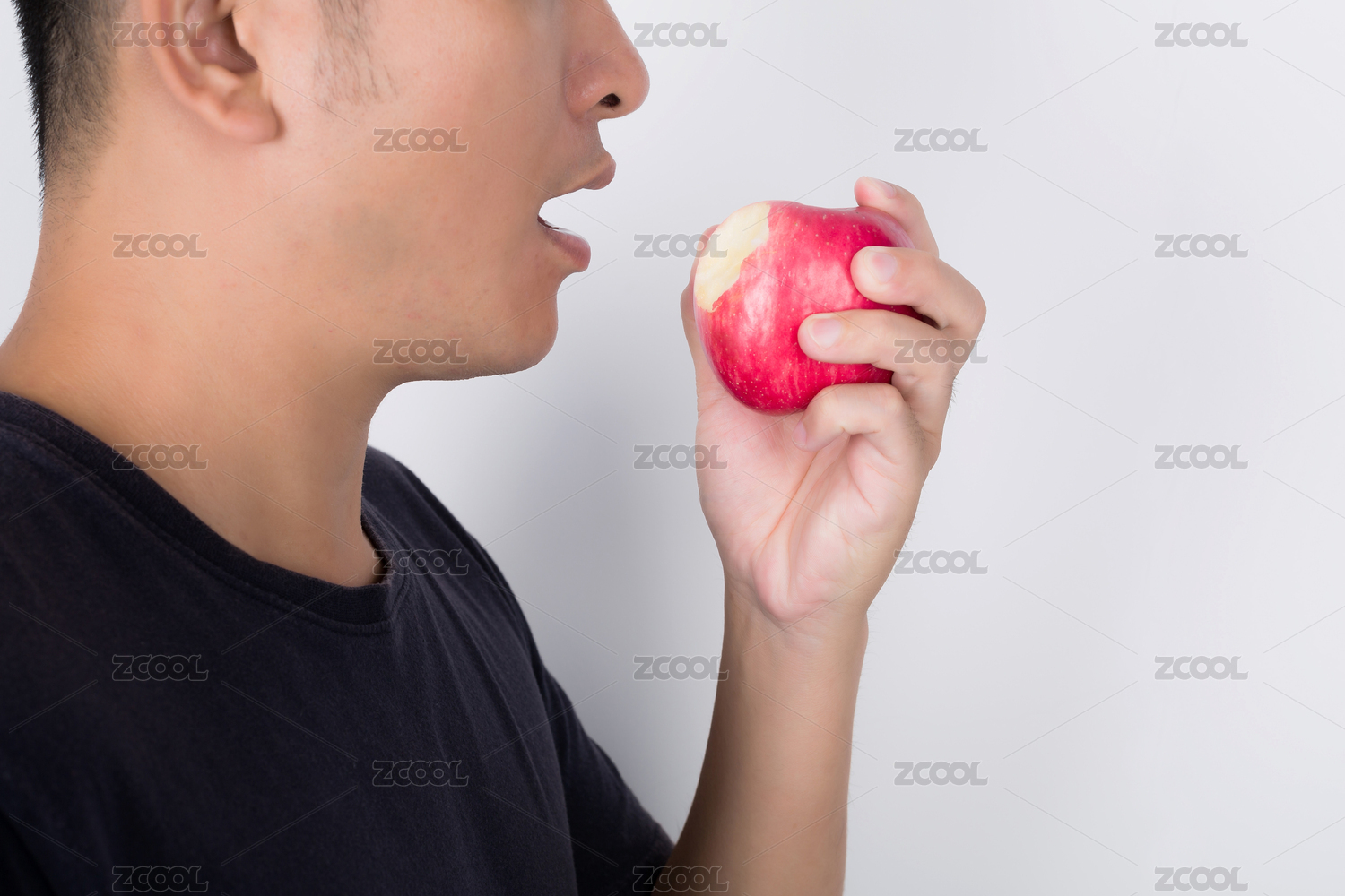 正在吃苹果的亚洲男人