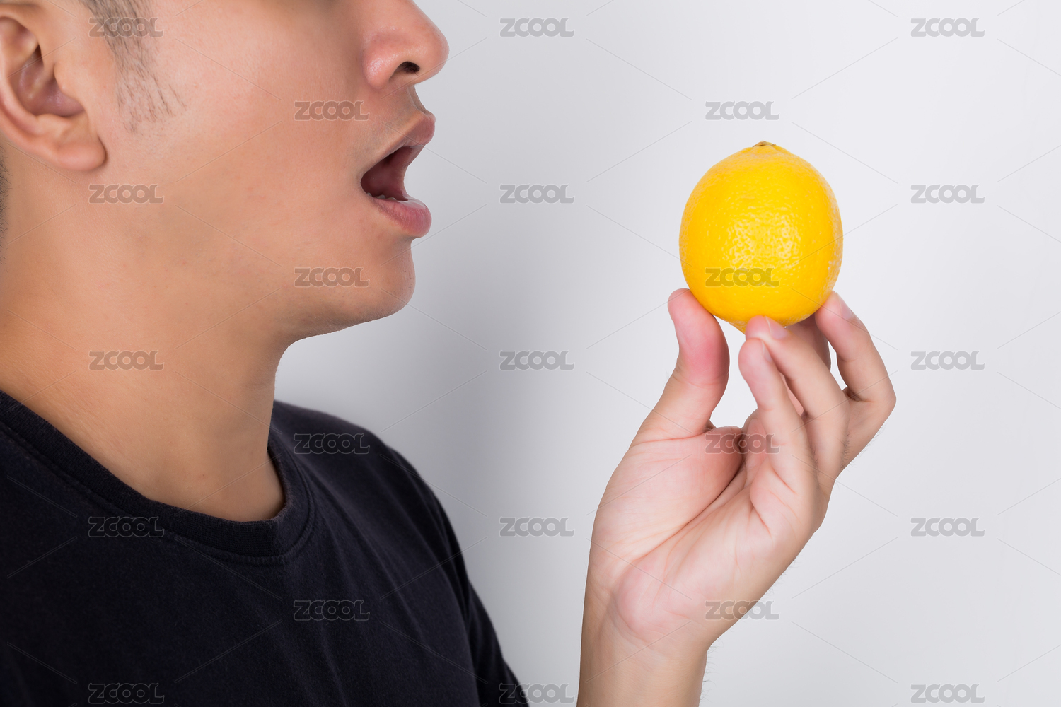 手拿柠檬准备吃的亚洲男人