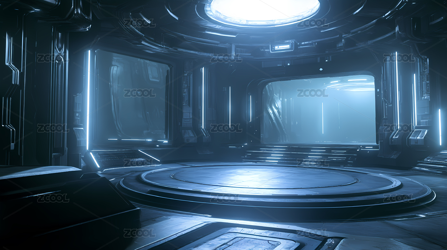 圆形,展台,舞台,设计,蓝色调,工业,虚拟,场景,现代,风格