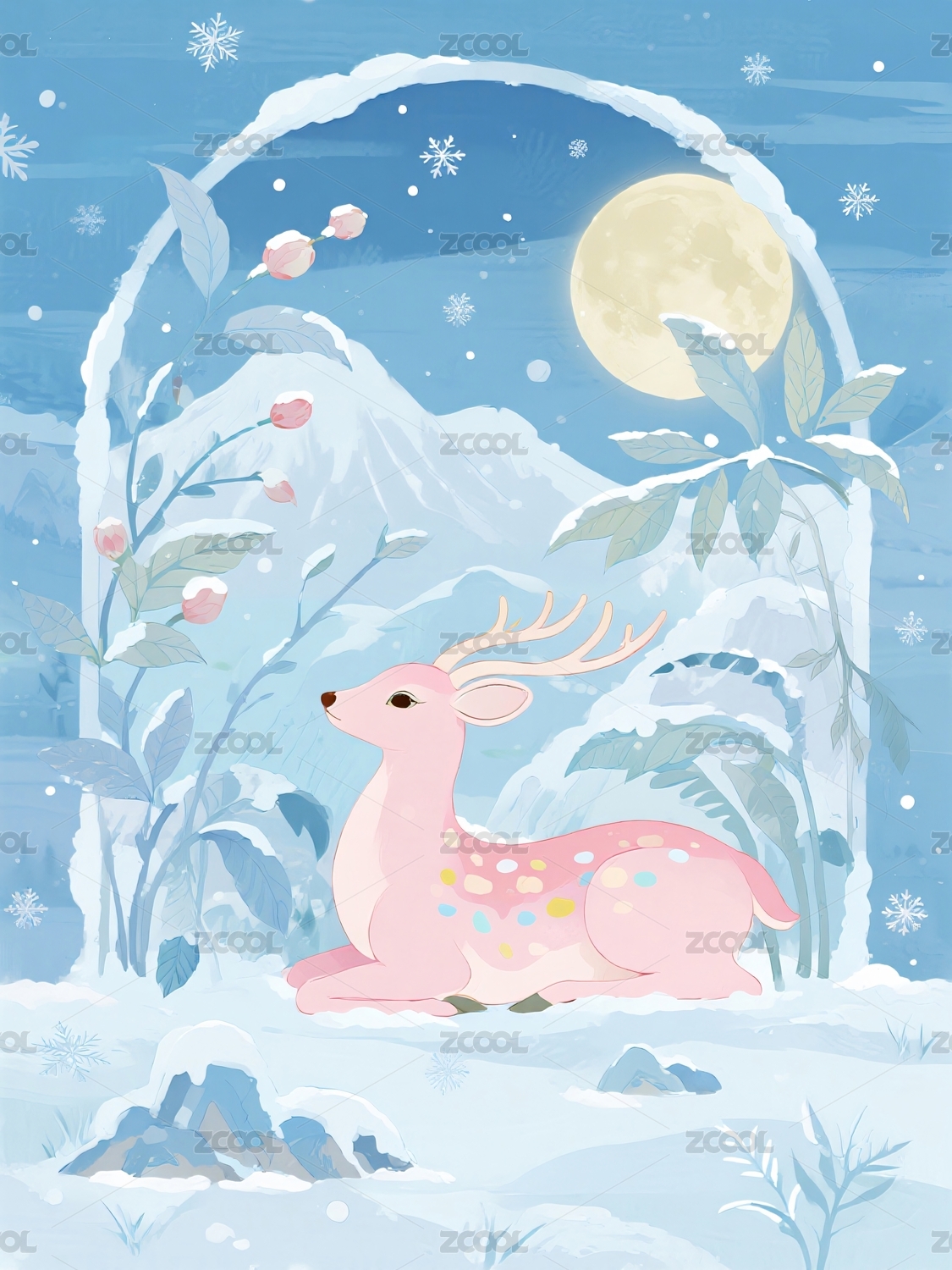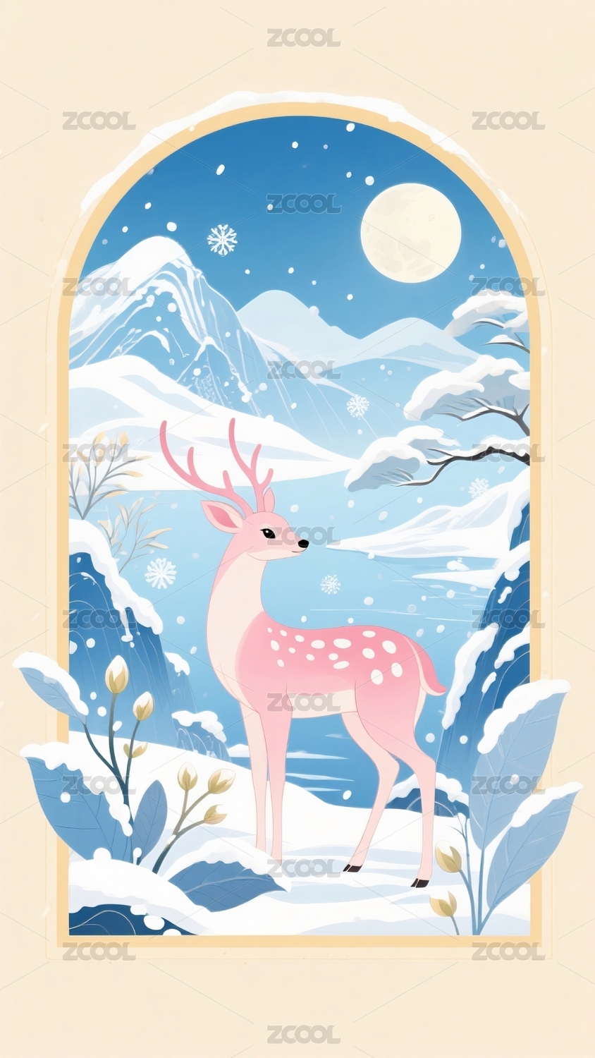 雪山,冬天,自然,大自然,插画,鹿,麋鹿,寒冷,动物,高山