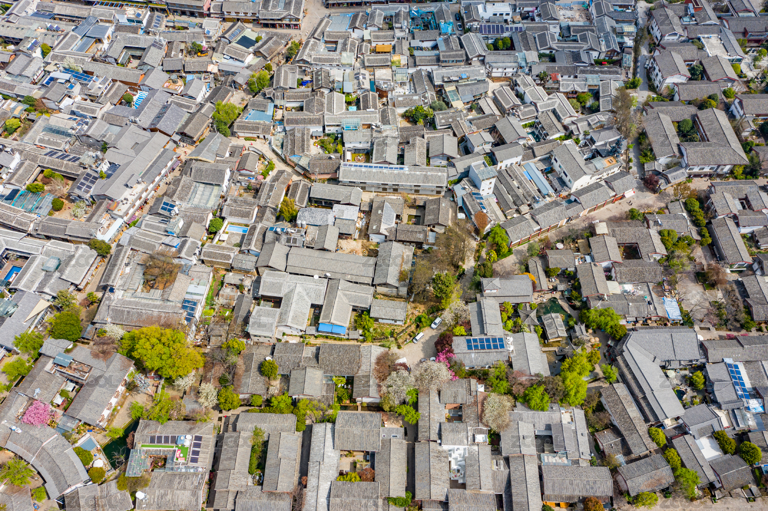 航拍云南丽江古城丽江市古城区大研镇建筑