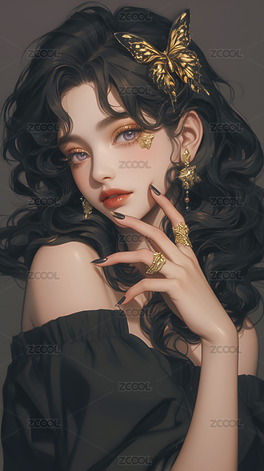 美女,女孩,女生,卷发,对视,竖构图,复古