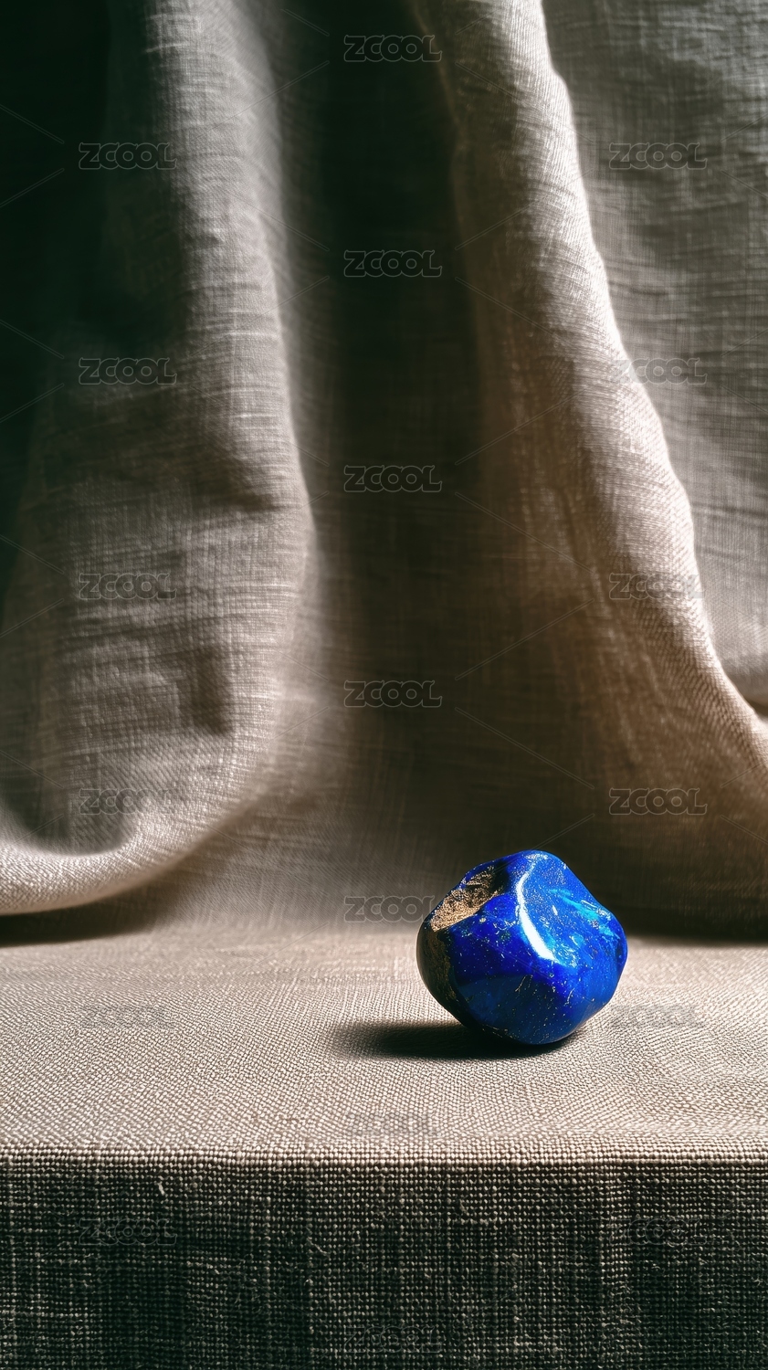 桌面布料上青金石方块禅意国风3D立体场景