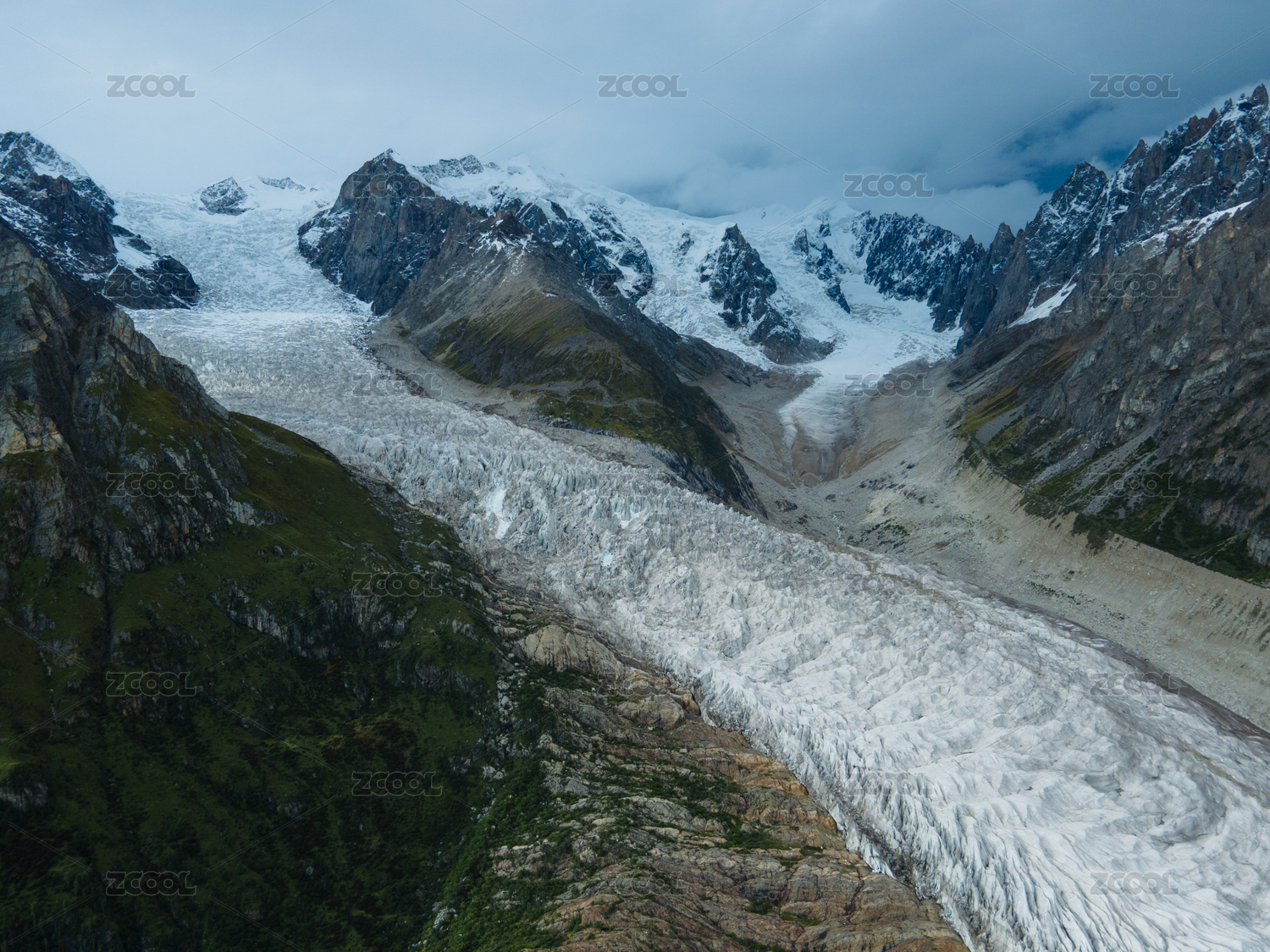 航拍中国新疆南部慕士塔格冰川公园冰川景观