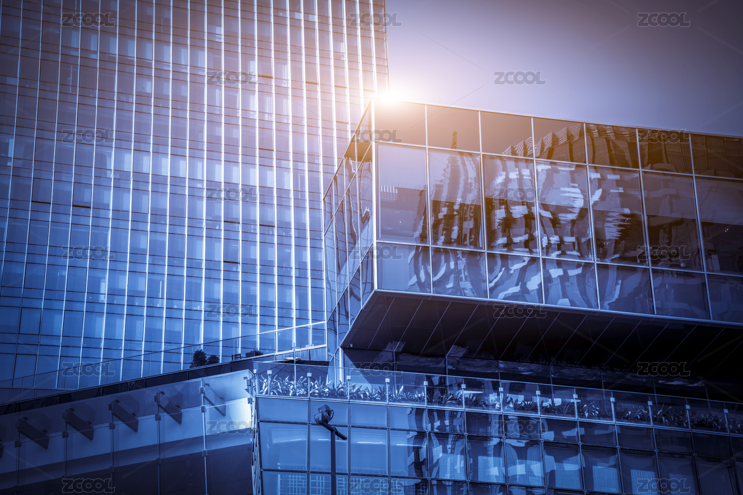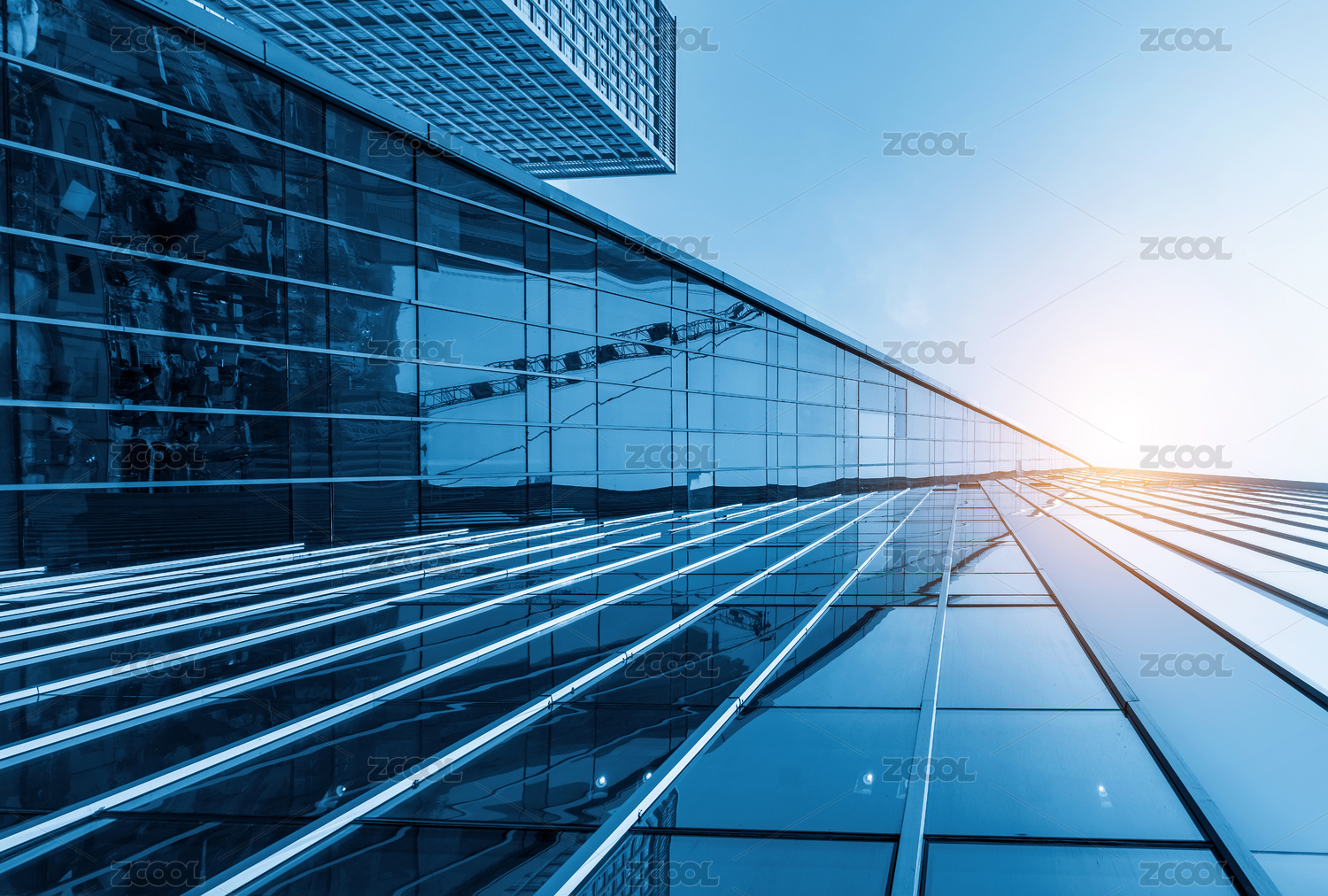 仰视钢结构建筑和现代建筑玻璃幕墙