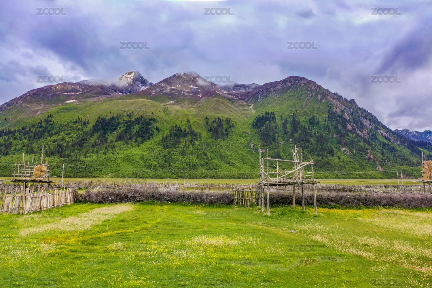 川藏线然乌湖安目错旁的瓦巴村的牧场美景