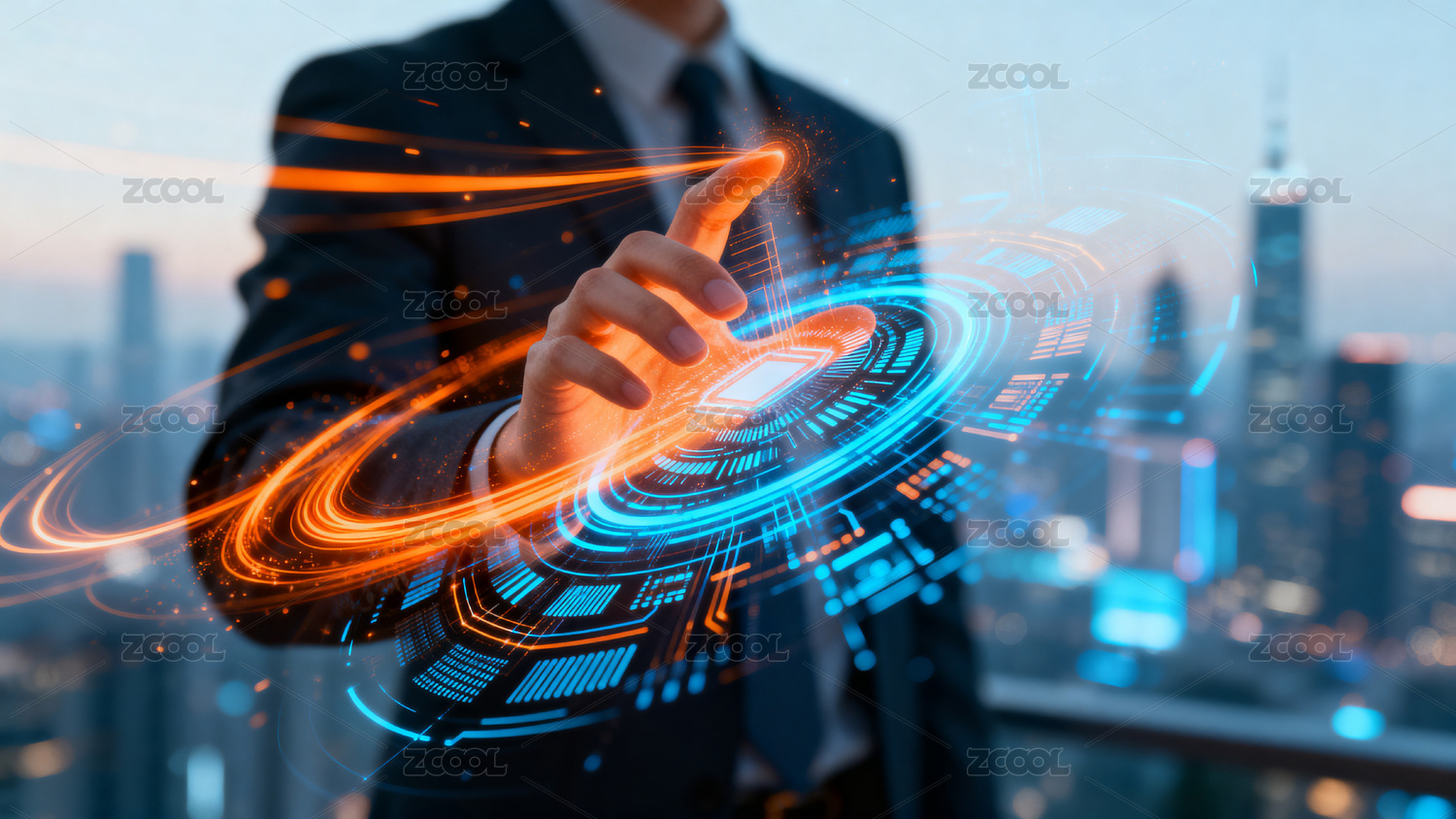 未来科技手指触碰虚拟城市