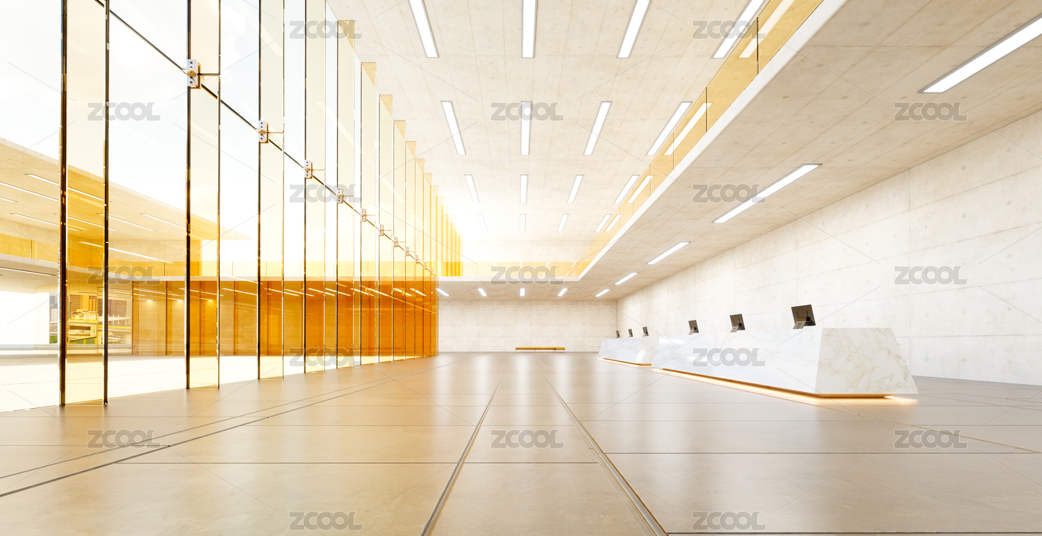 3D渲染宽敞大型落地玻璃墙企业办公室外观