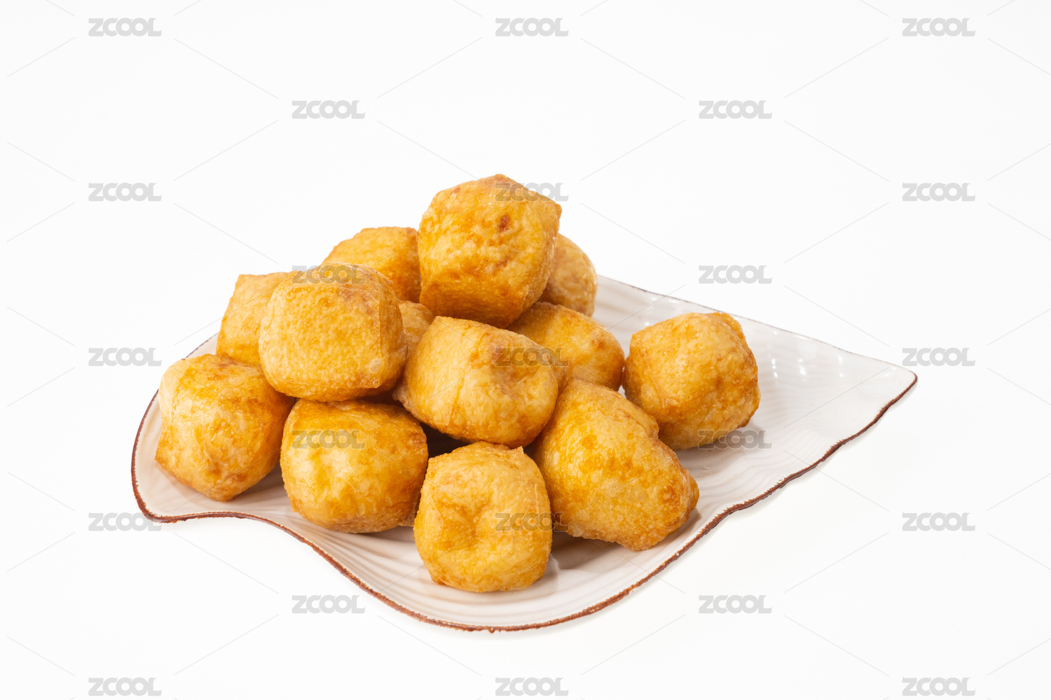 豆制品,豆腐,素鸡,油炸,油煎,辣椒,白色,黄色,红色,盘子