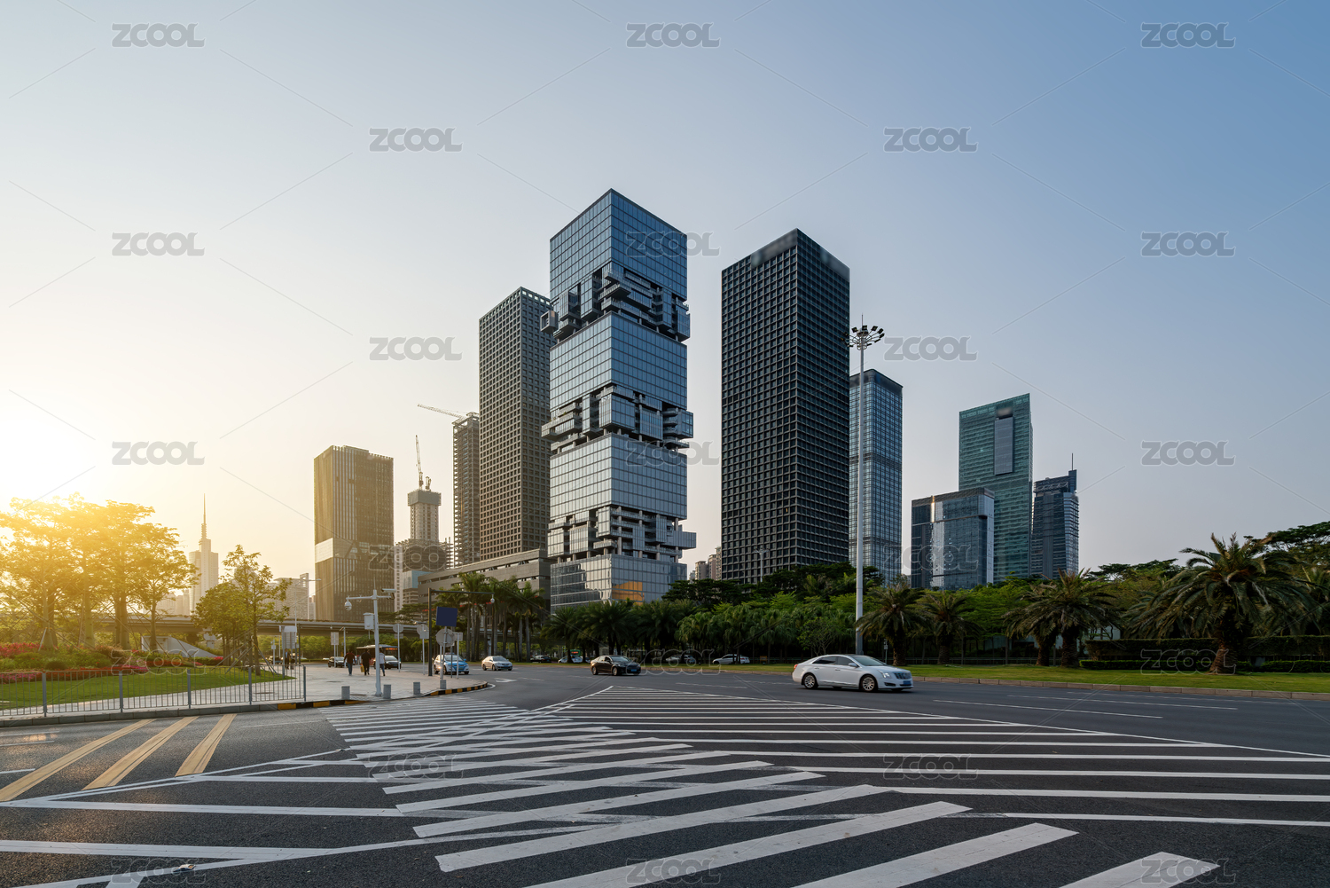中国深圳前海CBD建筑风光和大草坪
