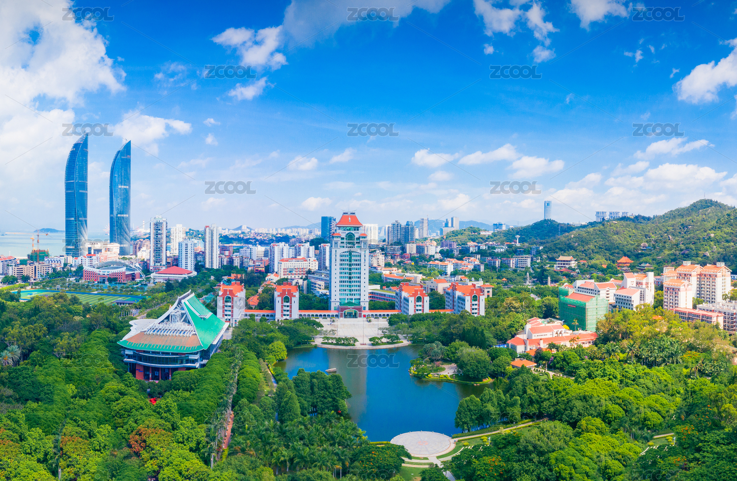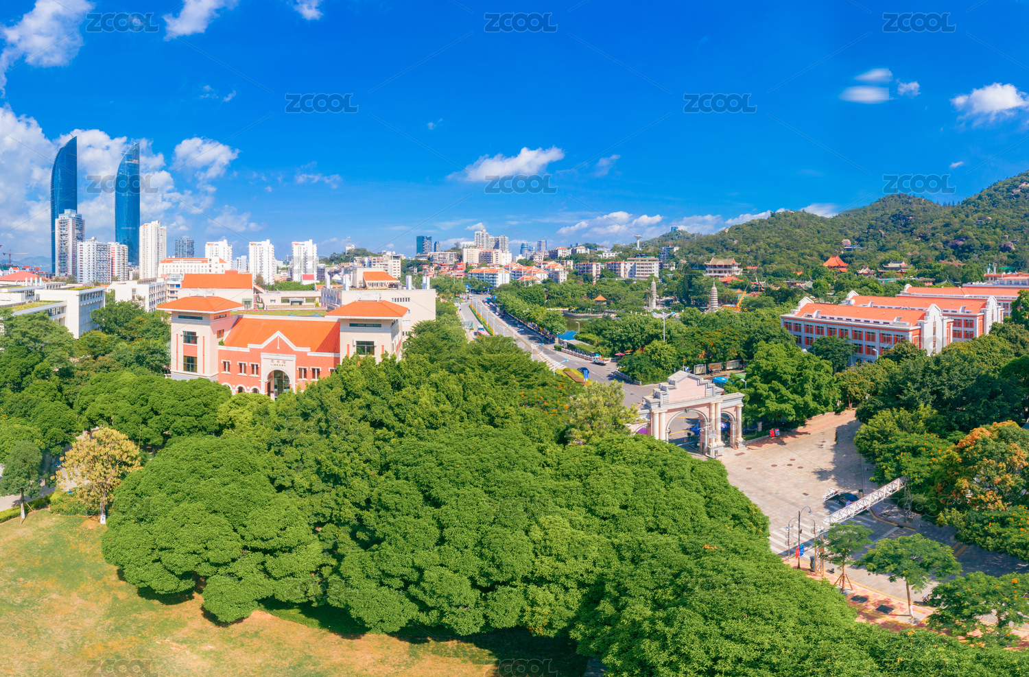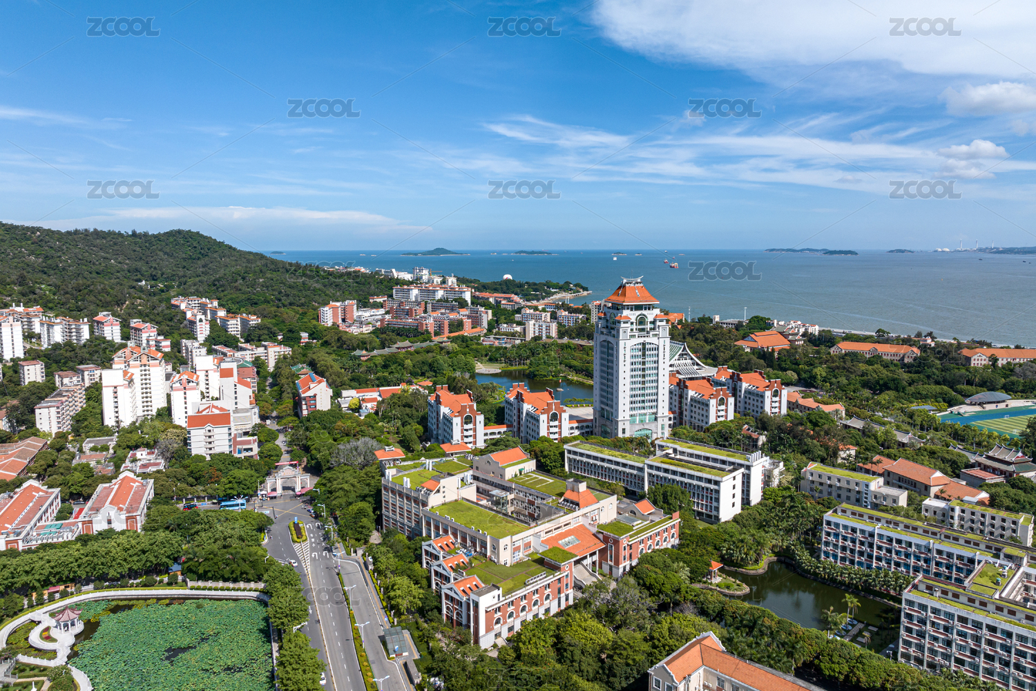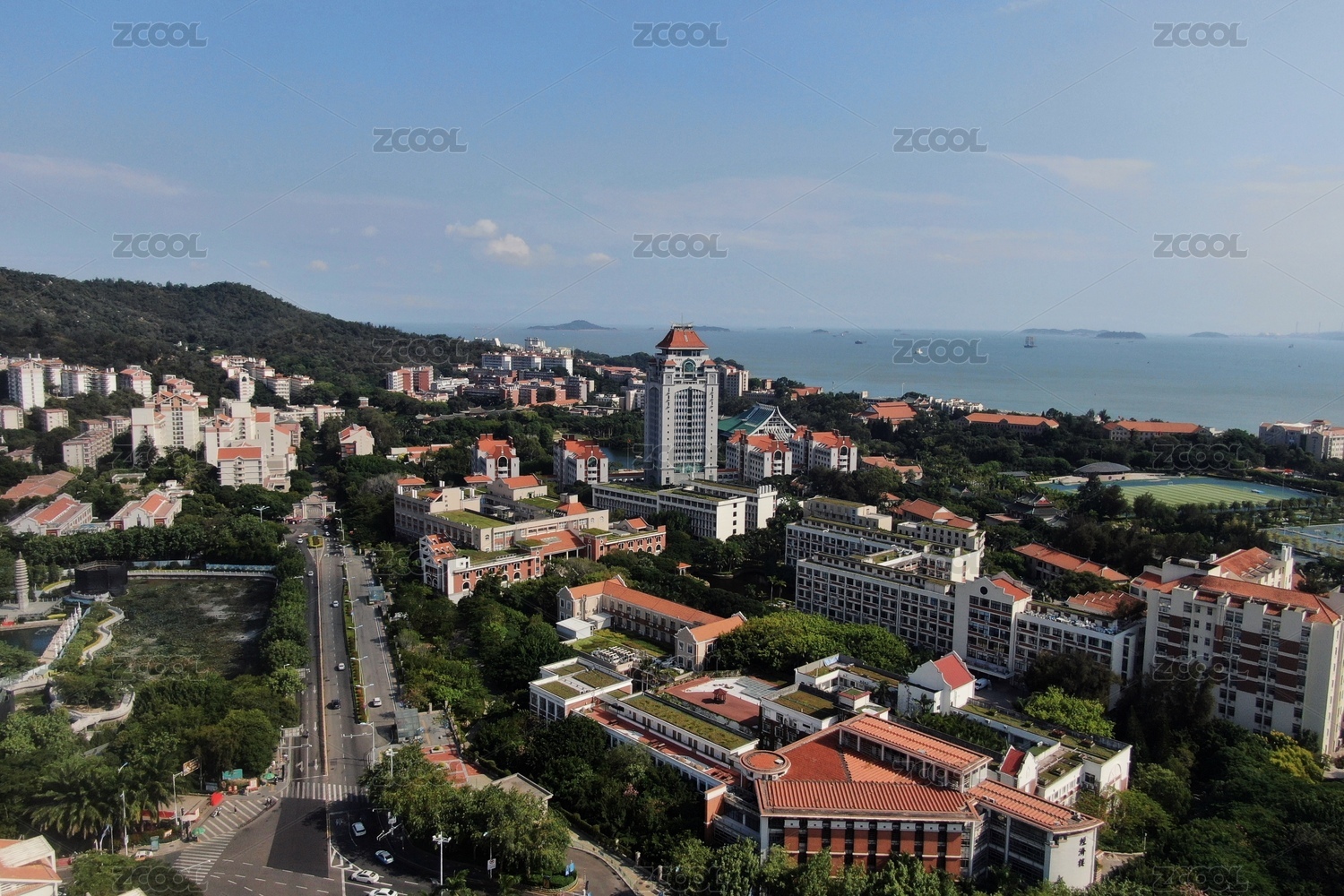 厦门,厦门大学,厦大,大学,校园,教学楼,福建,航拍,全景,足球场