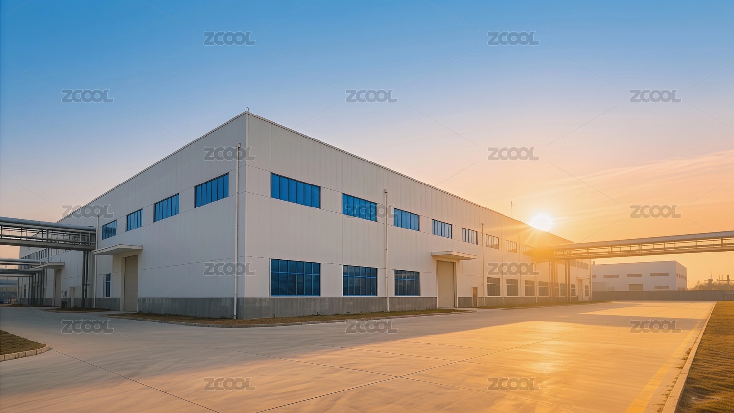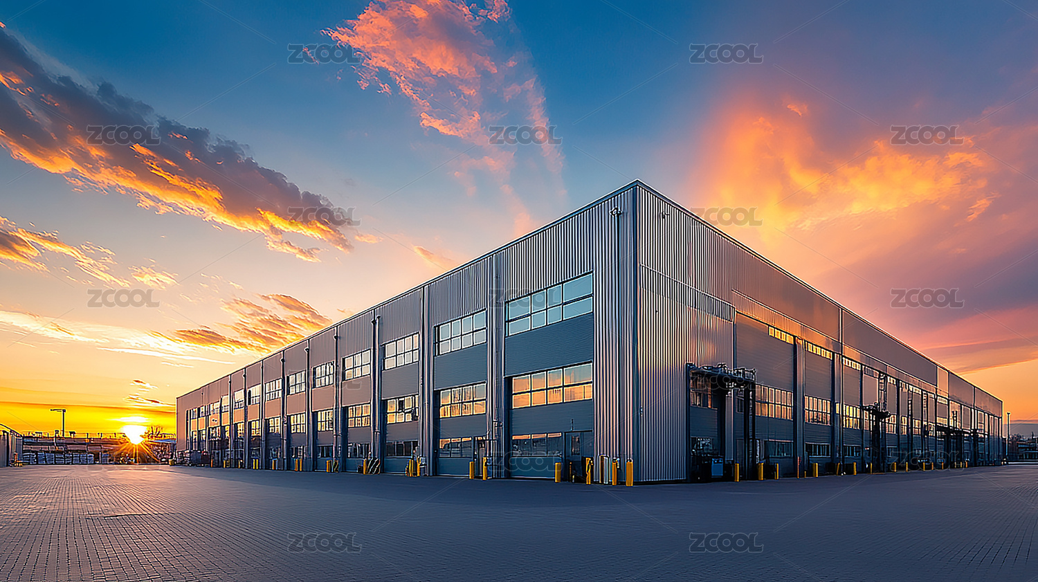 工业厂房夕阳反射建筑