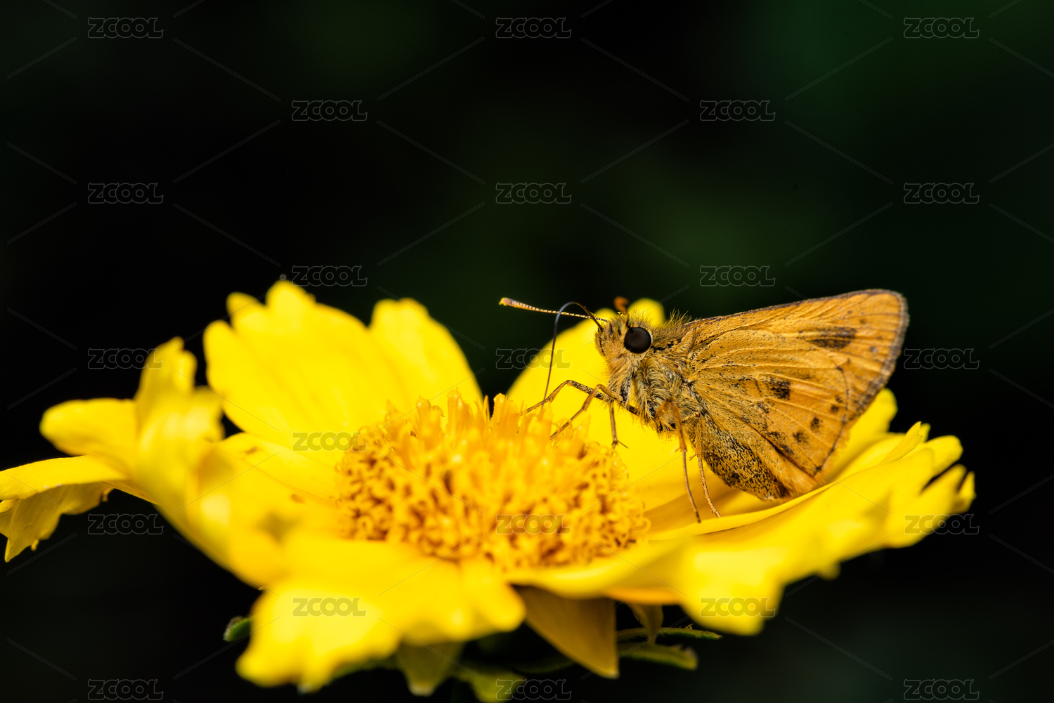 金鸡菊花上采蜜的飞蛾特写