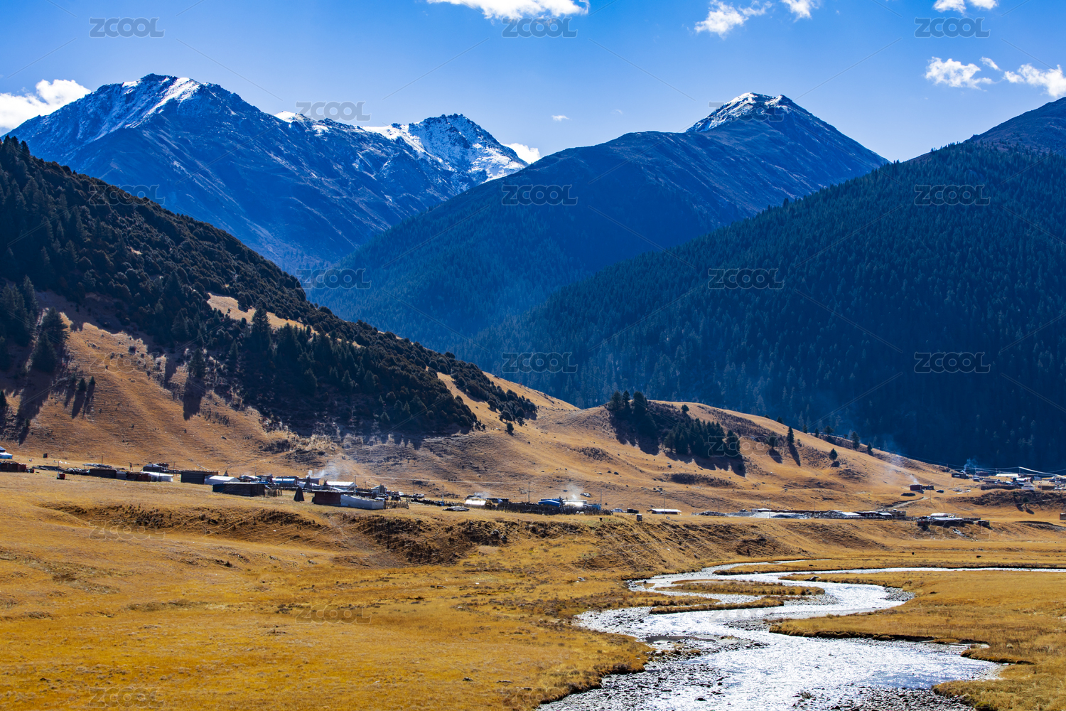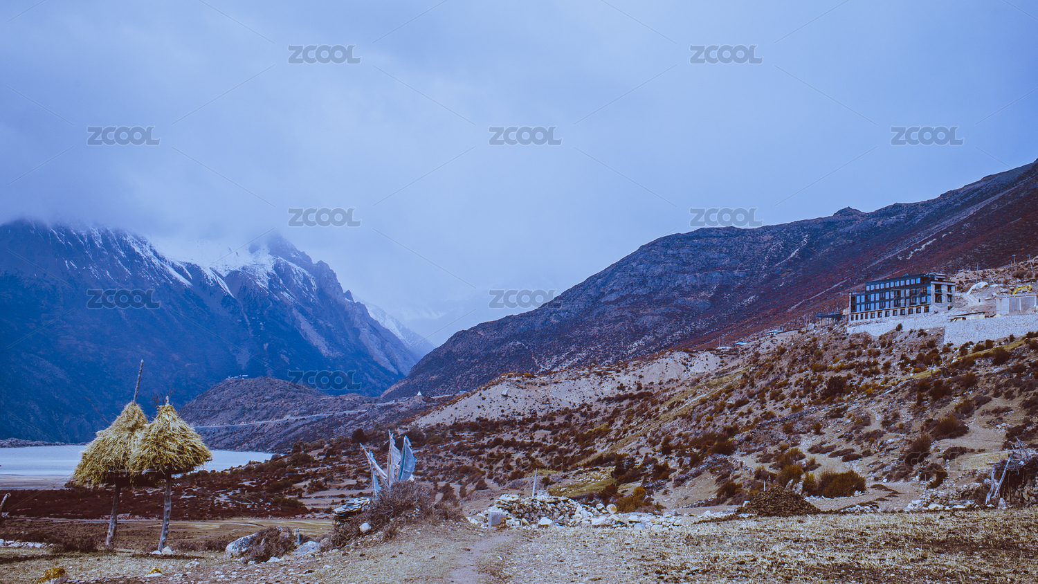中国西藏墨竹工卡县美丽的自然草原与山脉
