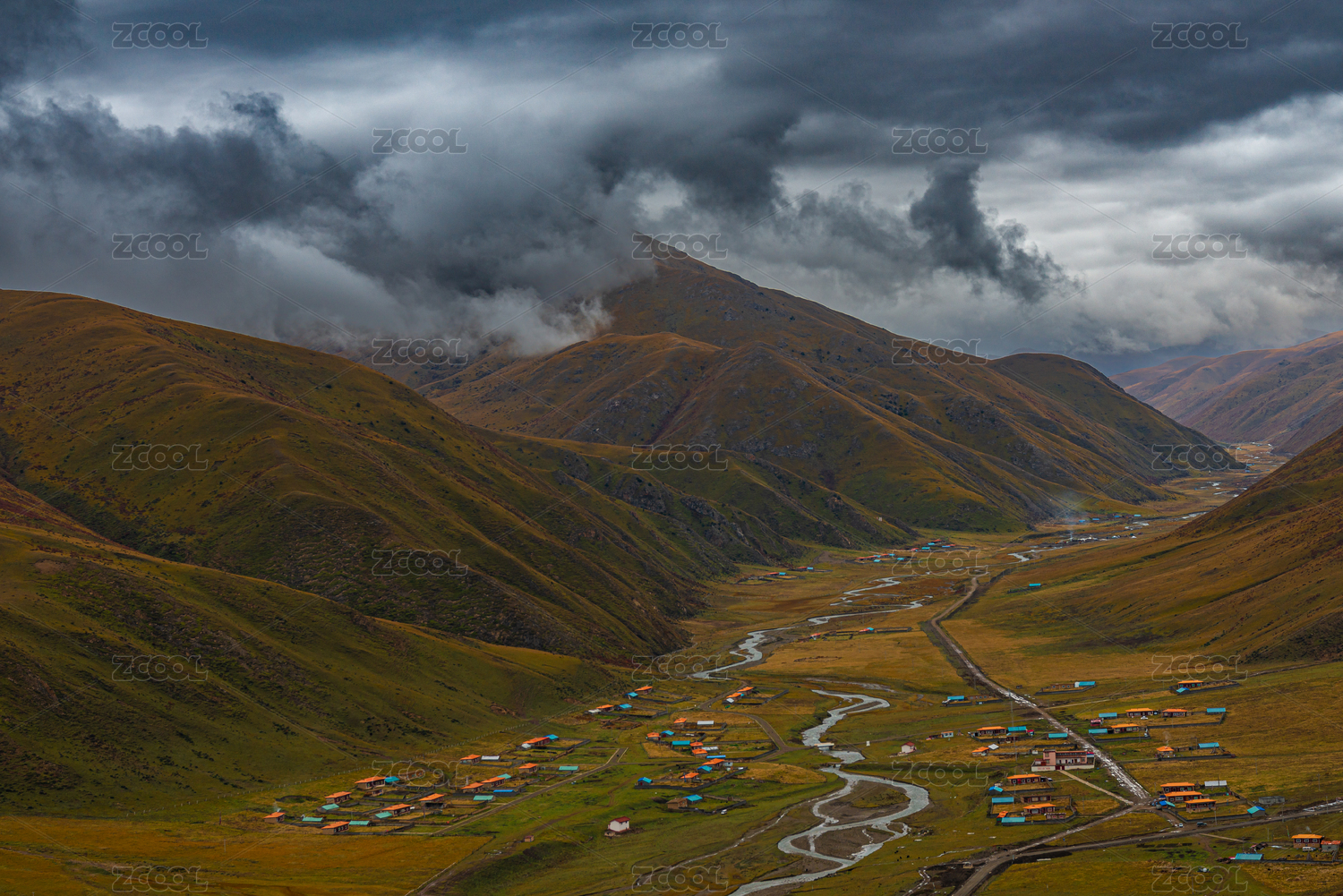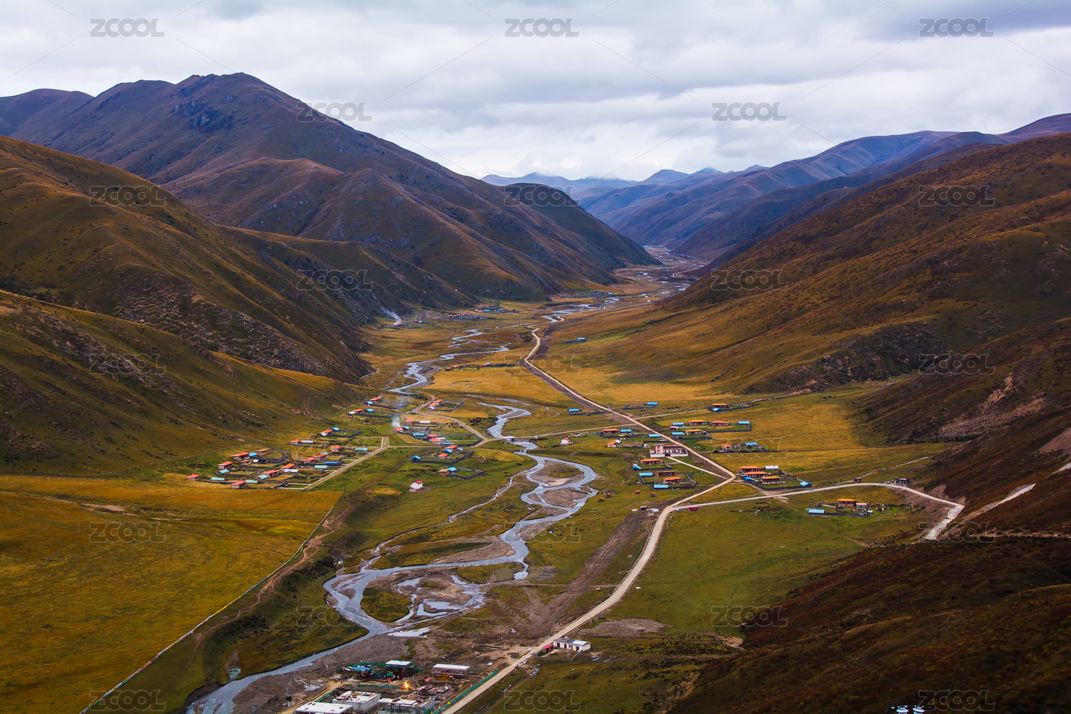 中国四川甘孜州色达五明佛学院背坡峡谷