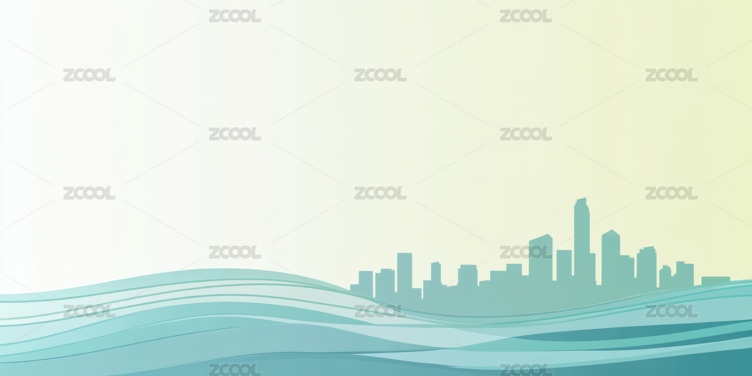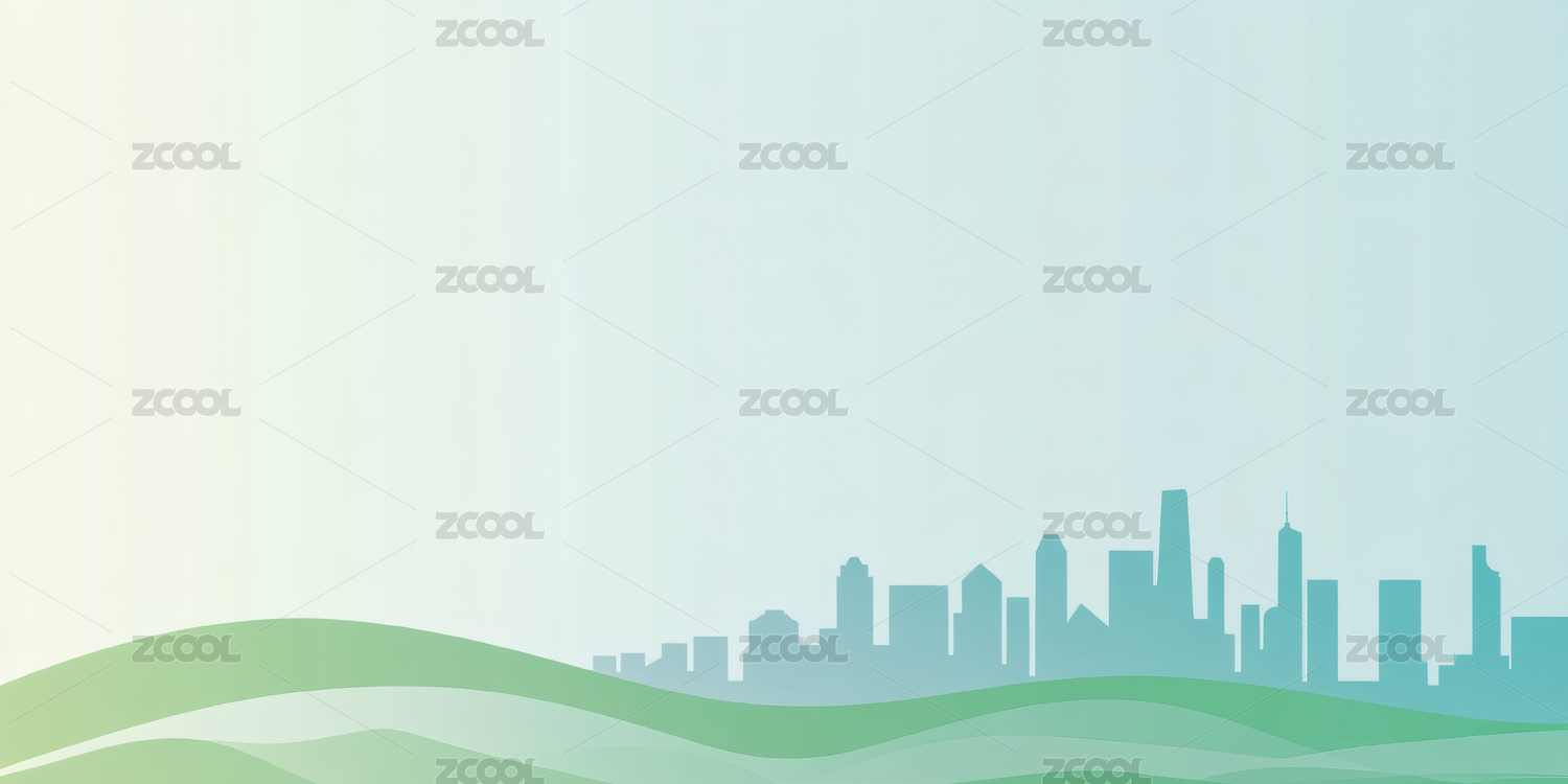 城市天际线与绿色波浪背景