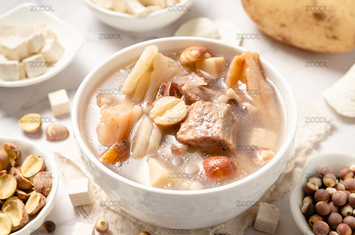 一碗健脾祛湿的传统药膳猪肉莲藕四神汤
